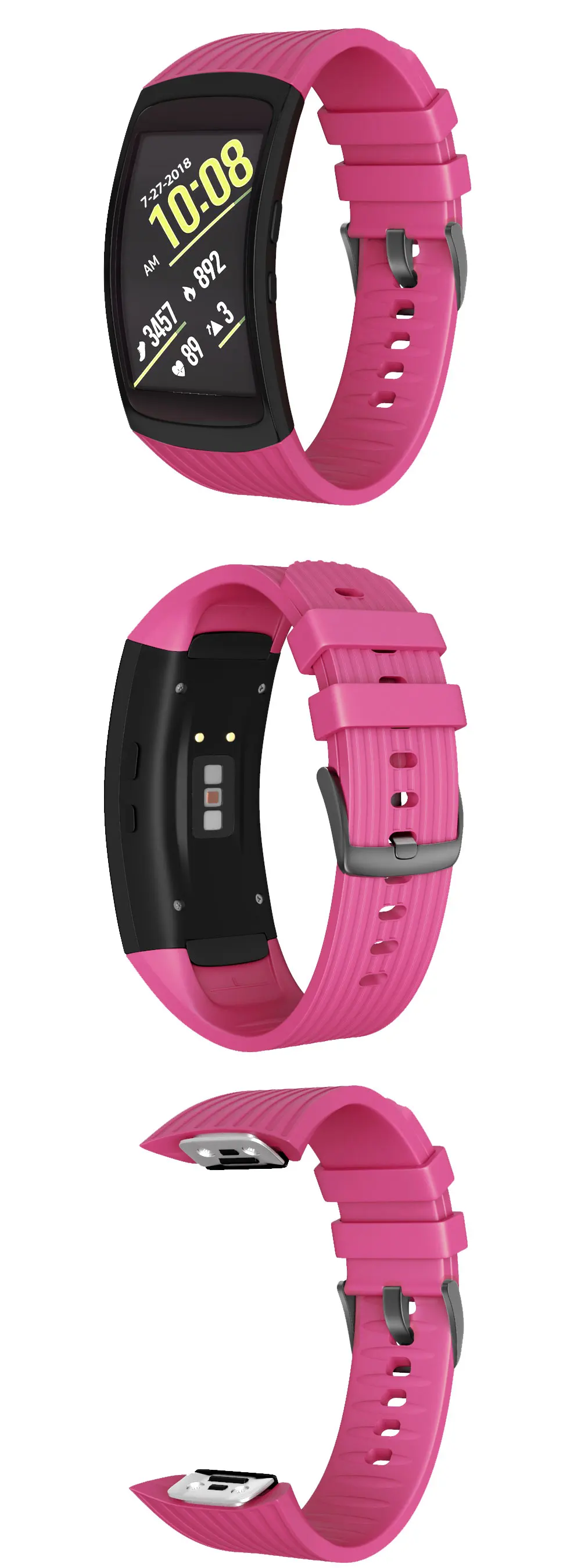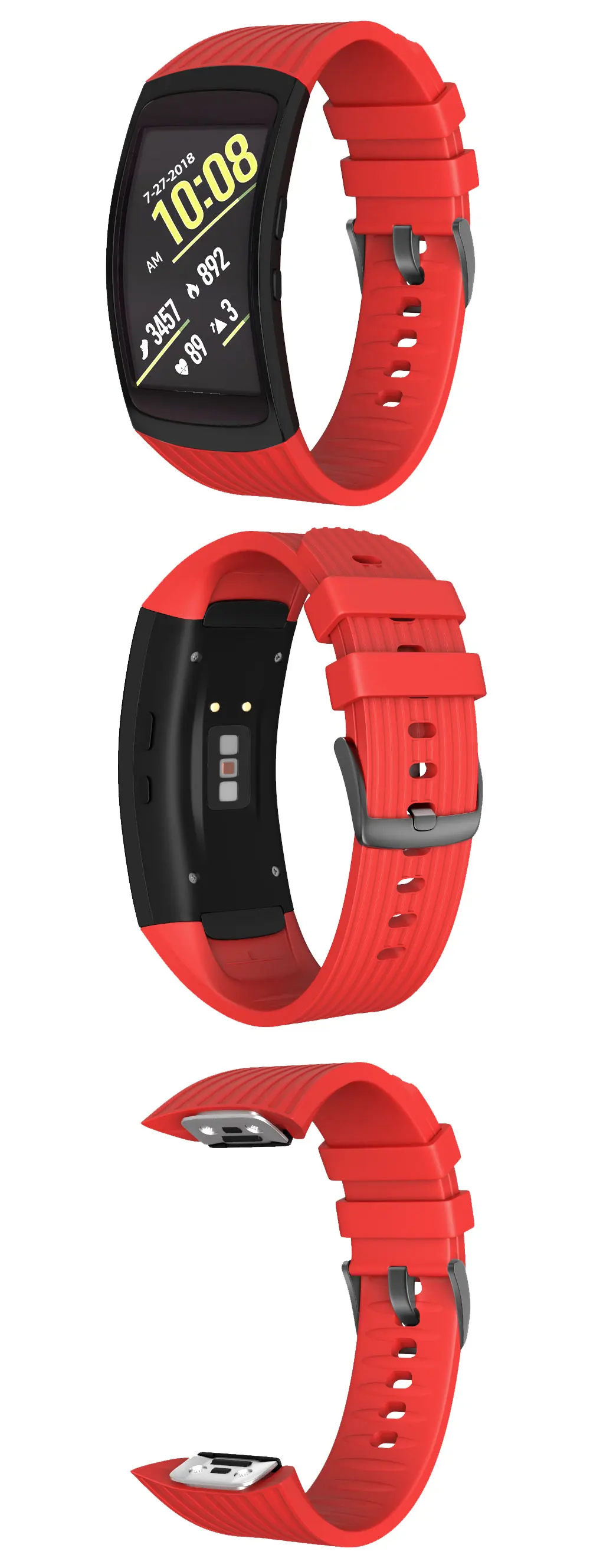 Спортивный силиконовый сменный смарт-ремешок для Samsung Galaxy Gear Fit 2 Pro R365 ремешок для часов для Samsung Gear Fit 2 SM-R360☞Качественный силикон: силиконовый ремешок для часов изготовлен из гибкого силикона, удобный для повседневной носки. Слоты в полосе для регулировки длины, вы можете выбрать предпочтительный слот для использования, и настроить его, чтобы соответствовать вашему запястью. Хранители силиконовых лент также помогут вашим часам оставаться на месте.☞Быстроразъемные булавки: легко снимать или снимать ленту с помощью быстроразъемных штифтов. Он достаточно прочный, чтобы держать часы в безопасности. Отлично подходит для занятий спортом или ежедневного движения, очень легко переключать полосы.☞Окружность запястья: подходит для часов gear 2 pro, маленький размер подходит для запястья (170 мм-220 мм).Советы:1. Допускается погрешность в 1-3 мм из-за ручного измерения.2. Небольшое отклонение цвета будет отображаться из-за различных устройств отображения.3. Примечание: Эта ссылка предназначена только для замены силиконового ремешка. Не включая умное устройство или любые аксессуары на картинке