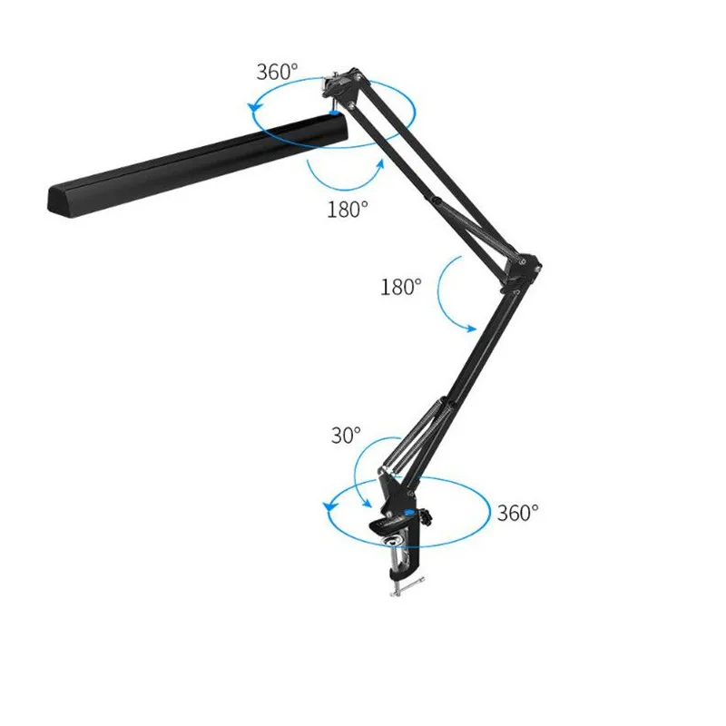 12 Вт Складная Настольная лампа с металлическим зажимом, 10 режимов, регулируемая яркость, 3 цвета, температура, длинная рука, регулируемая офисная Светодиодная лампа для чтения