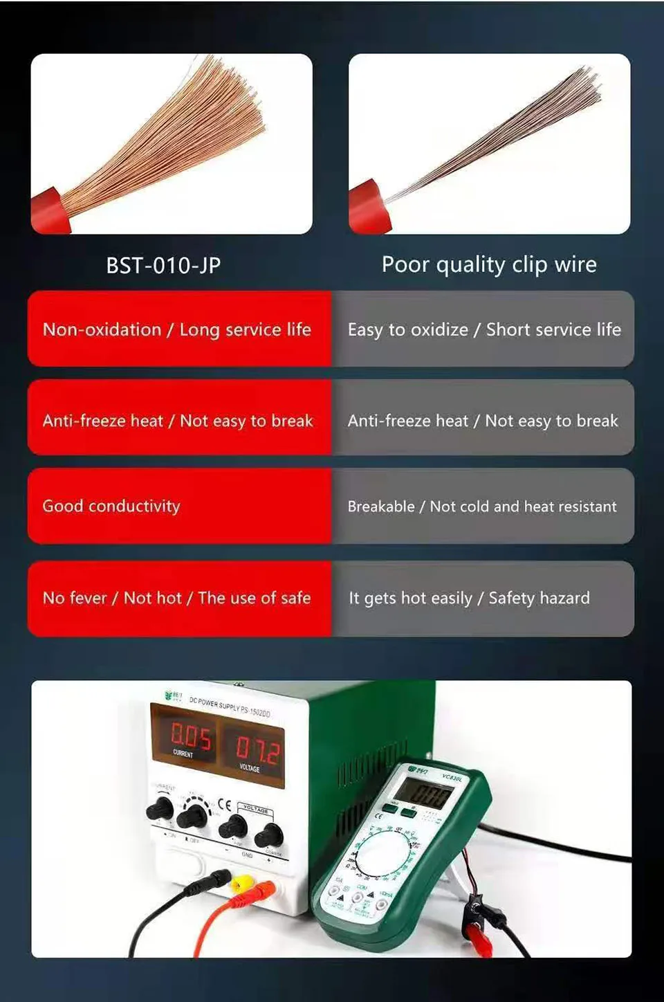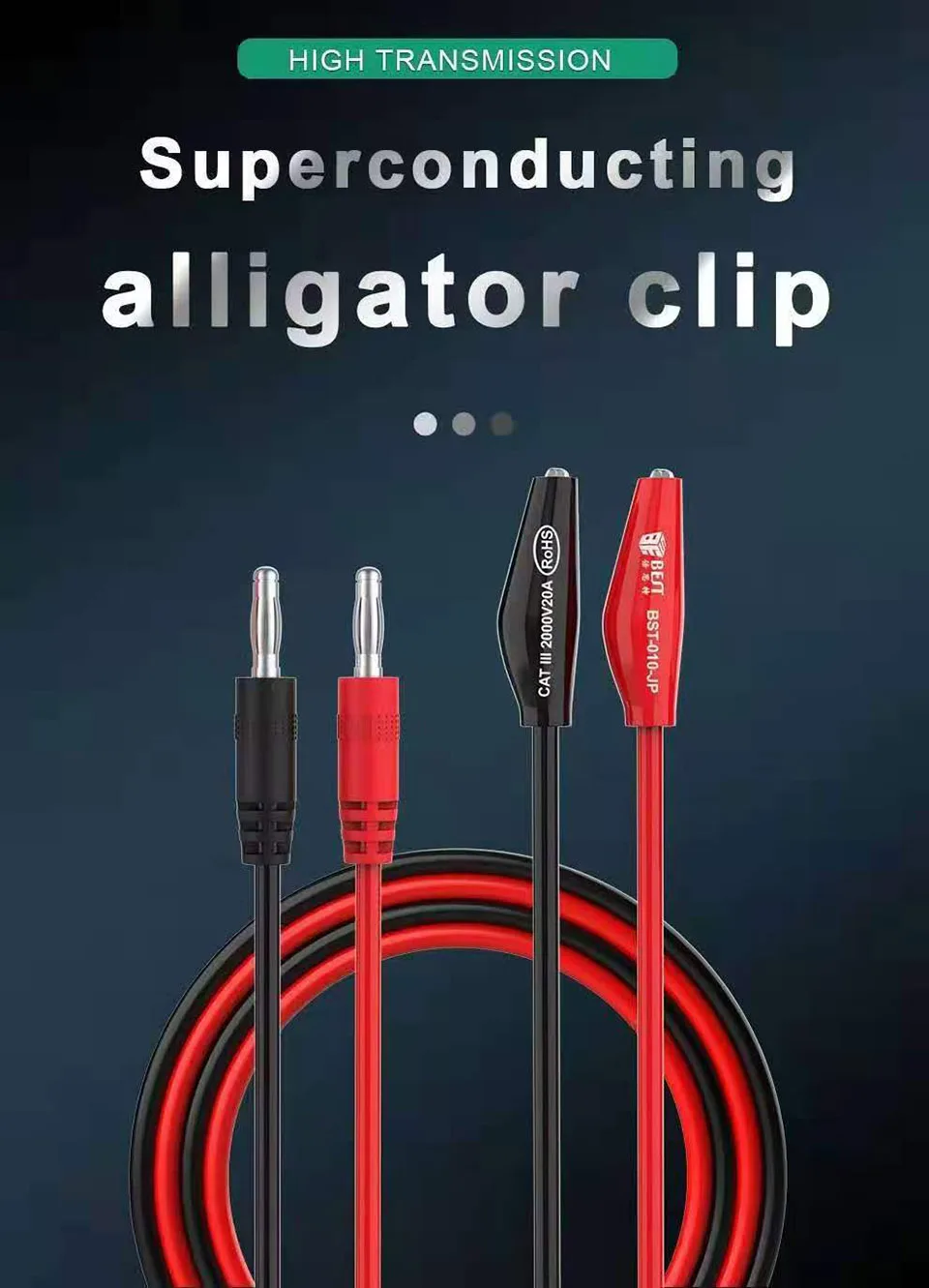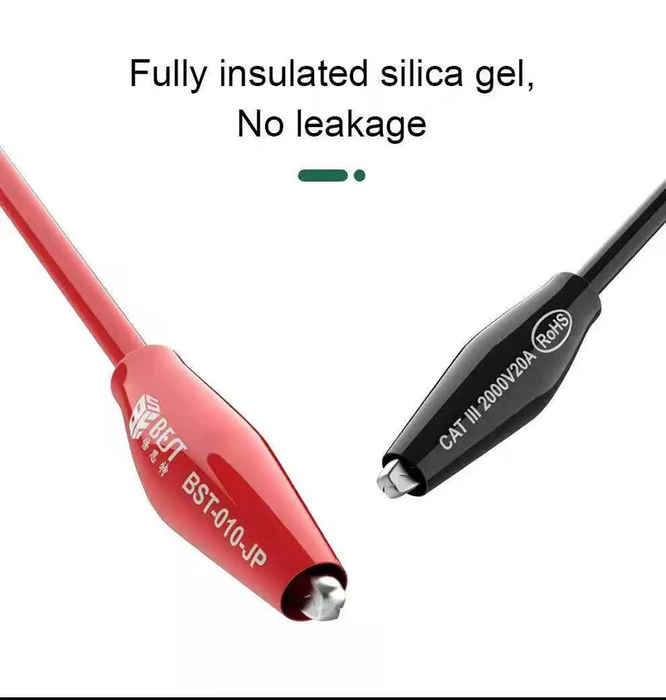 1. Тест-свинец, одна сторона-банановые пробки, другая сторона-зажимы челюстного типа «крокодил», идеально подходят для различных устройств и использования
