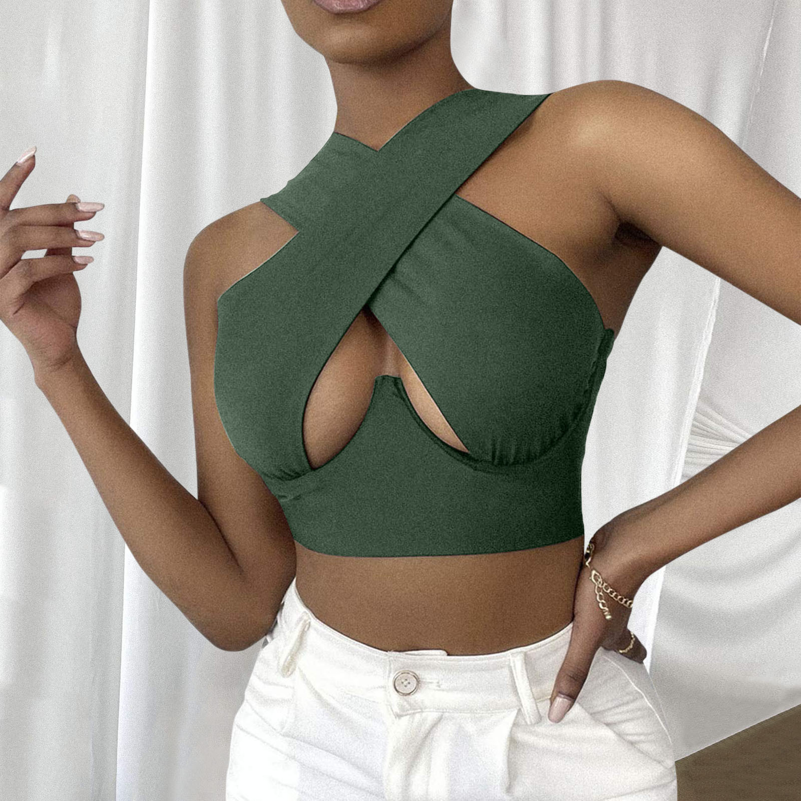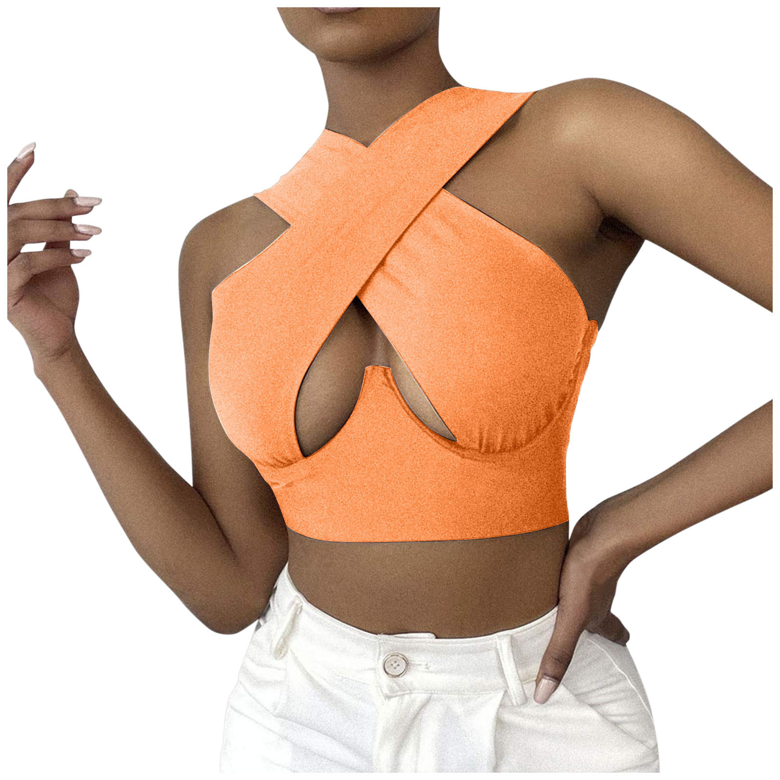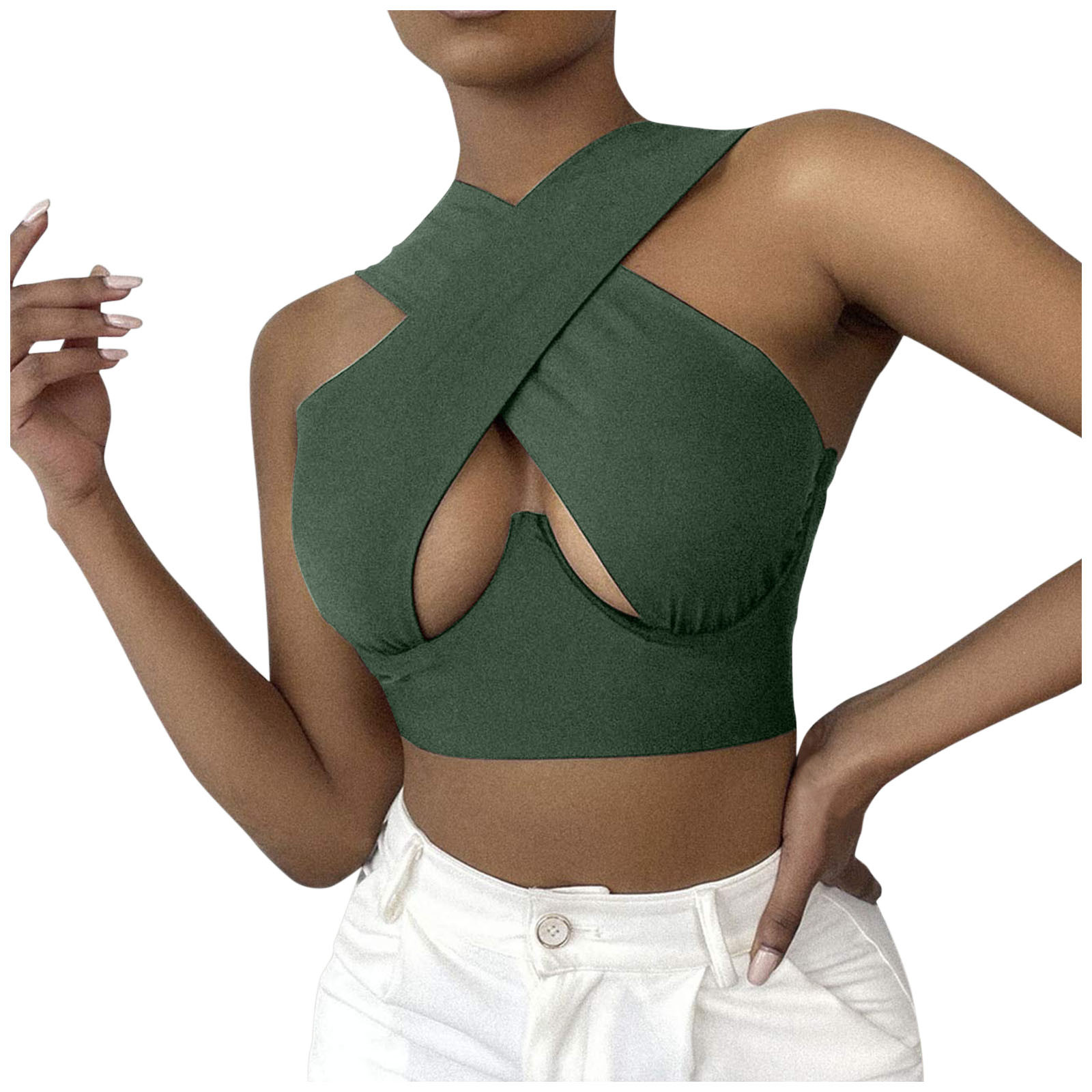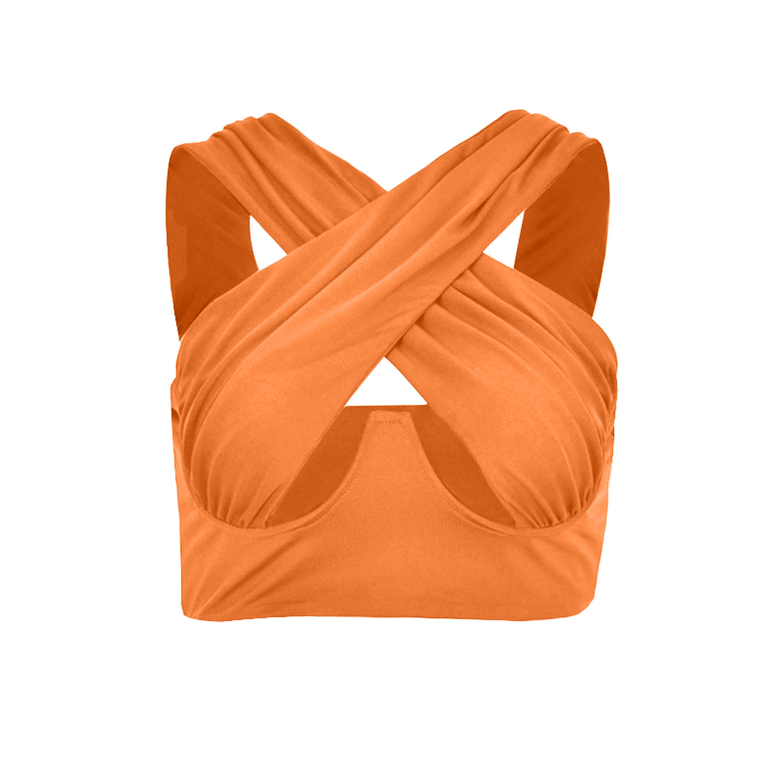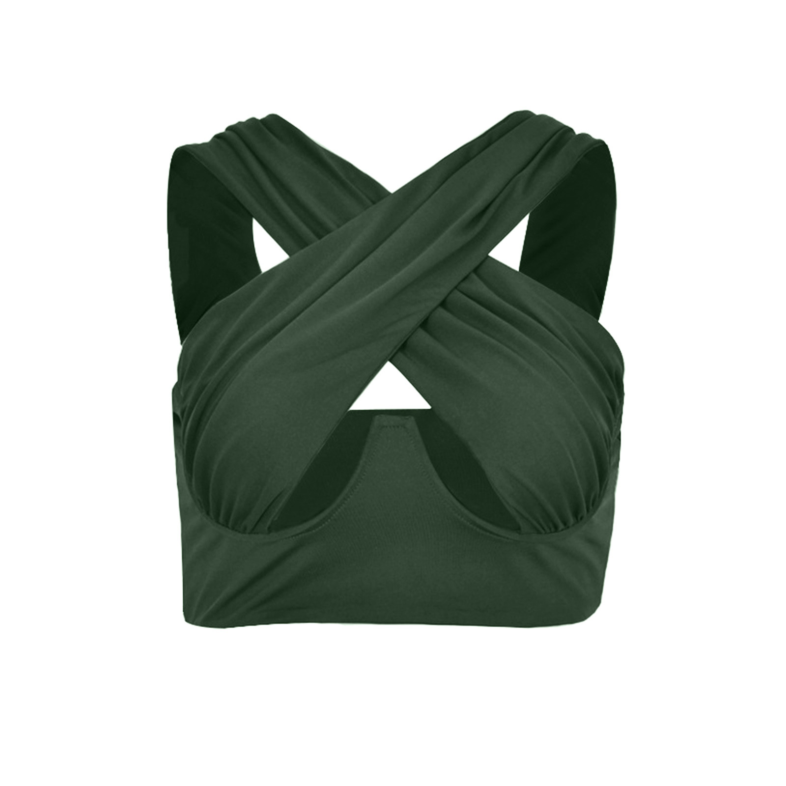 Женский укороченный топ с перекрестным вырезом и лямкой на шее, однотонные майки