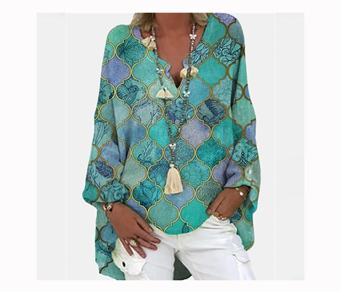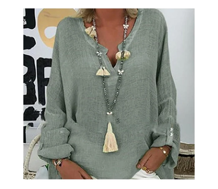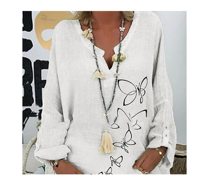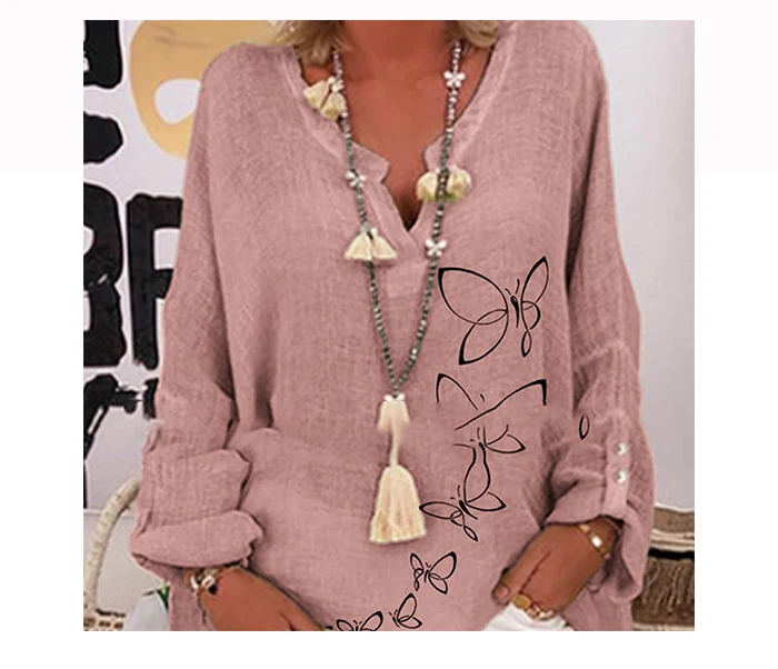 Рубашка женская льняная с цветочным принтом Элегантная блузка V-образным вырезом