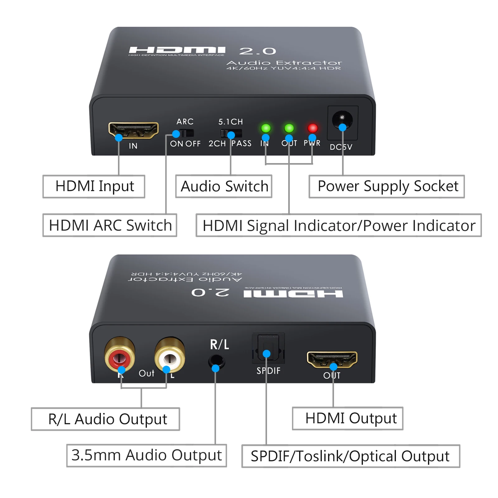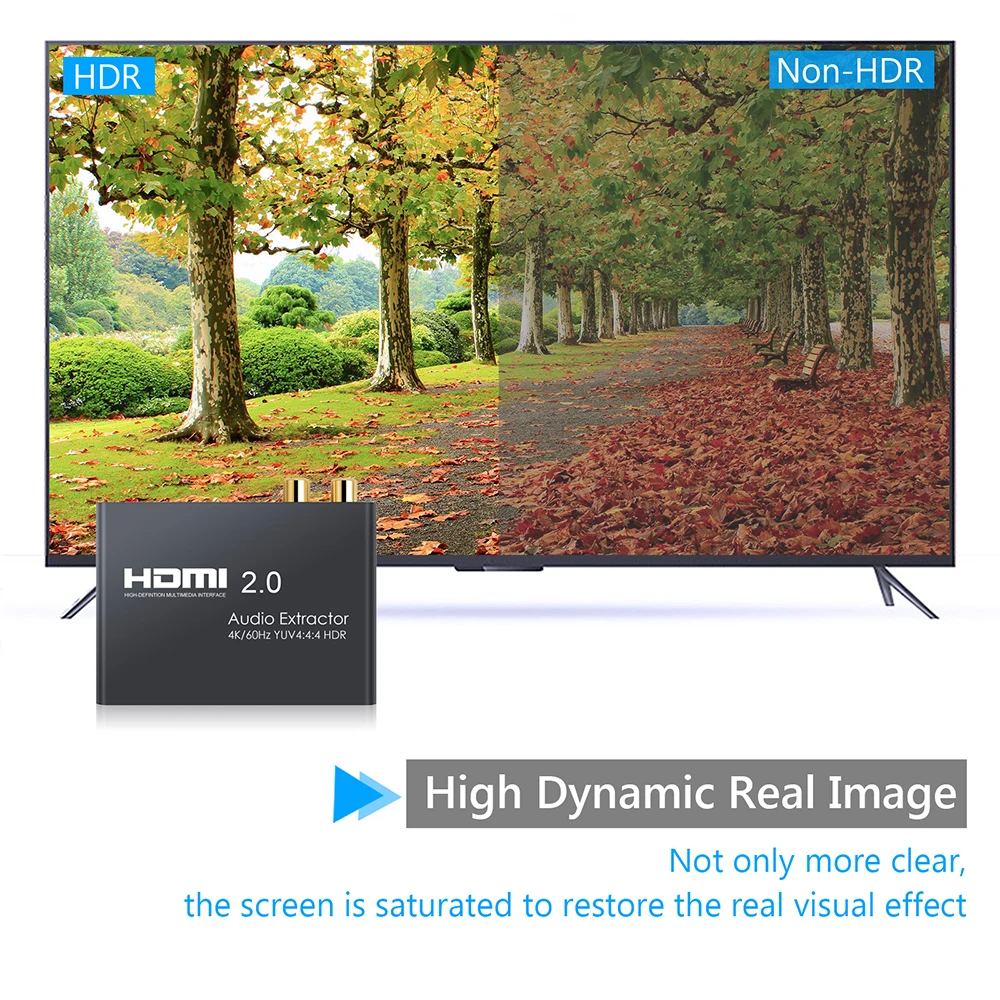 Извлекает HDMI-совместимый аудио в многоканальный оптический (SPDIF) или L/R 3,5 мм аналоговый аудио наушники