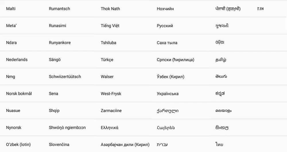Поддерживающие языки | Английский, французский, немецкий, итальянский, русский, испанский, турецкий, индонезийский, бахаса, каталанский, датский, ешти, филиппинский, греческий, хрватский, японский, корейский, латышский, латышский, лютвиу, магияр, сербский, малайский, украинский, вьетнамский, традиционный китайский, нидерландский |