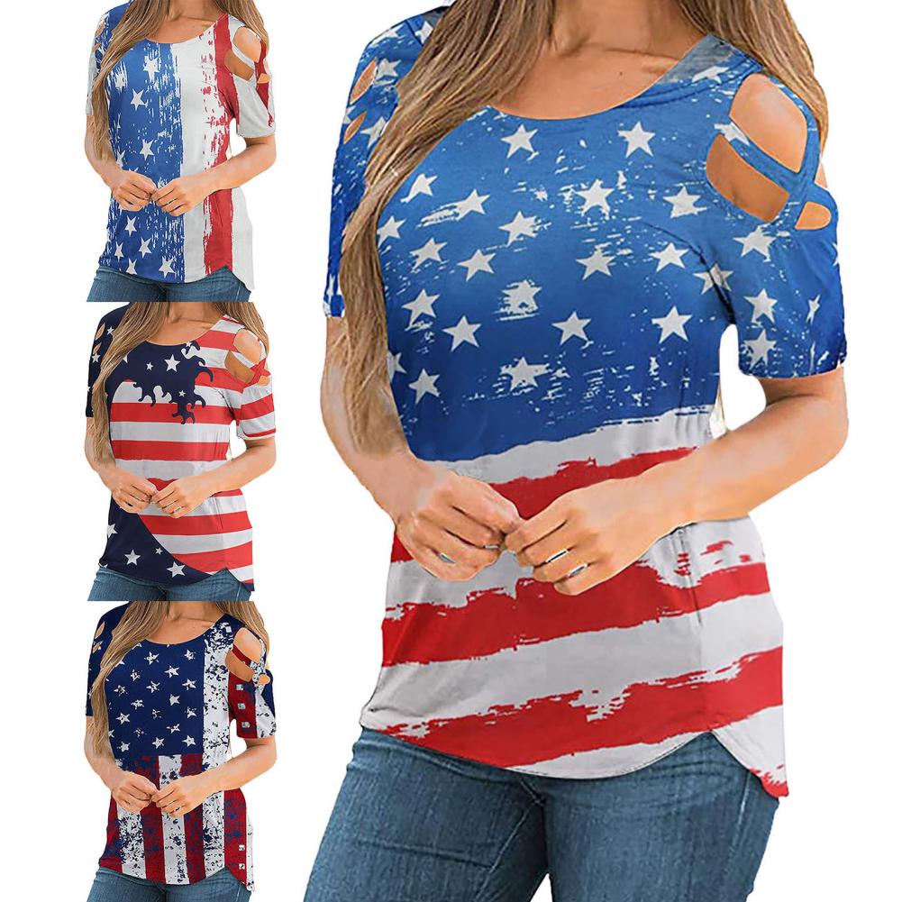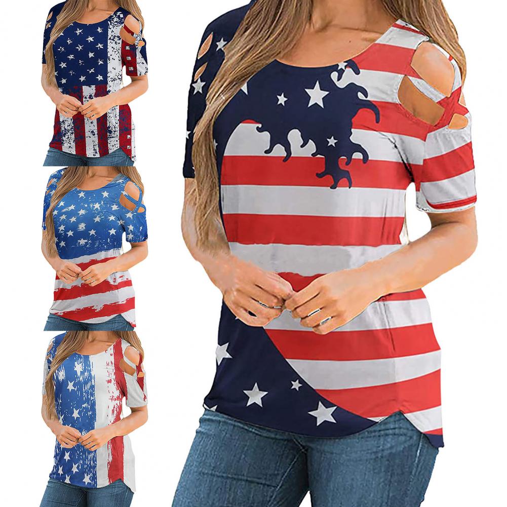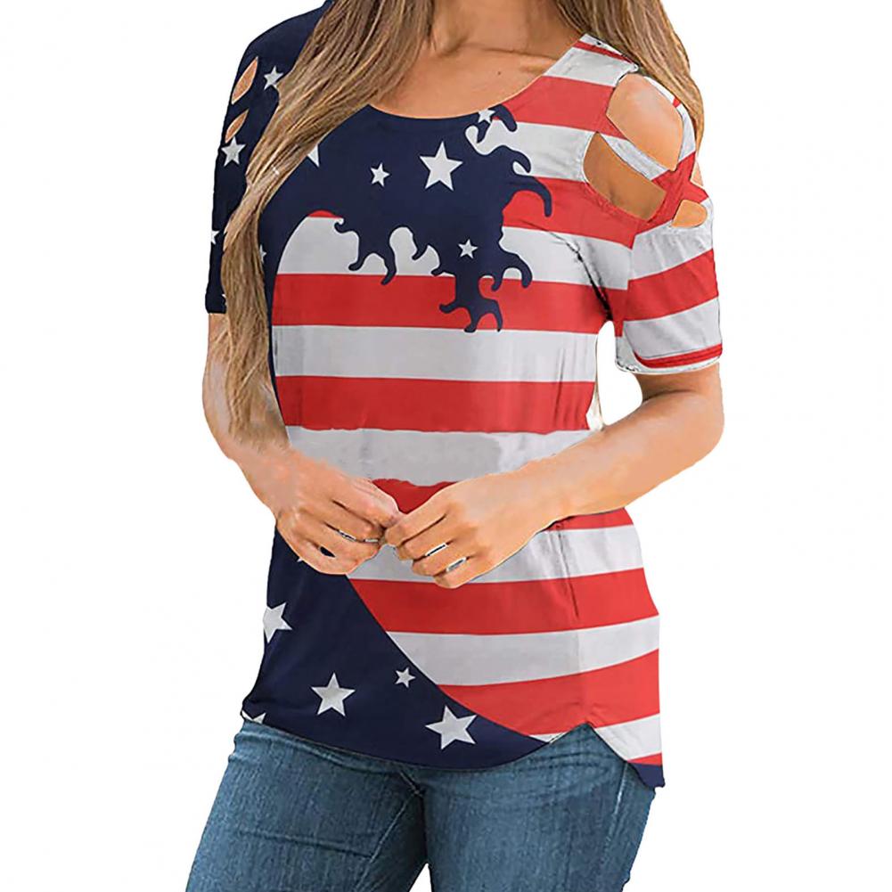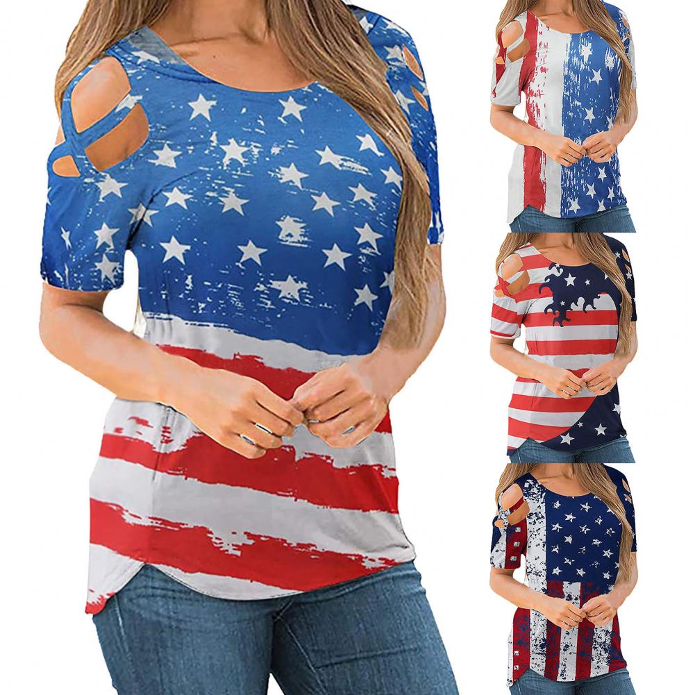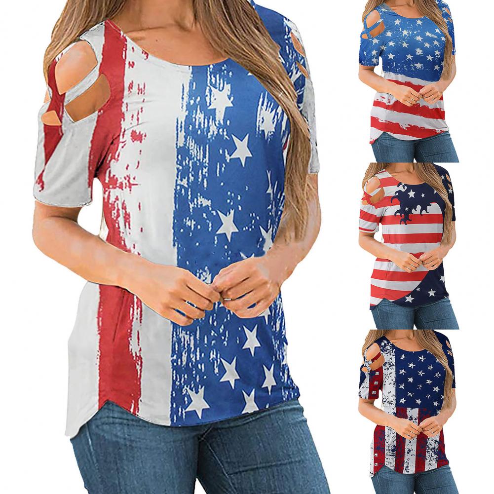 Женская блузка с короткими рукавами и принтом американского флага, патриотический топ в полоску с круглым вырезом, футболка для Дня независимости