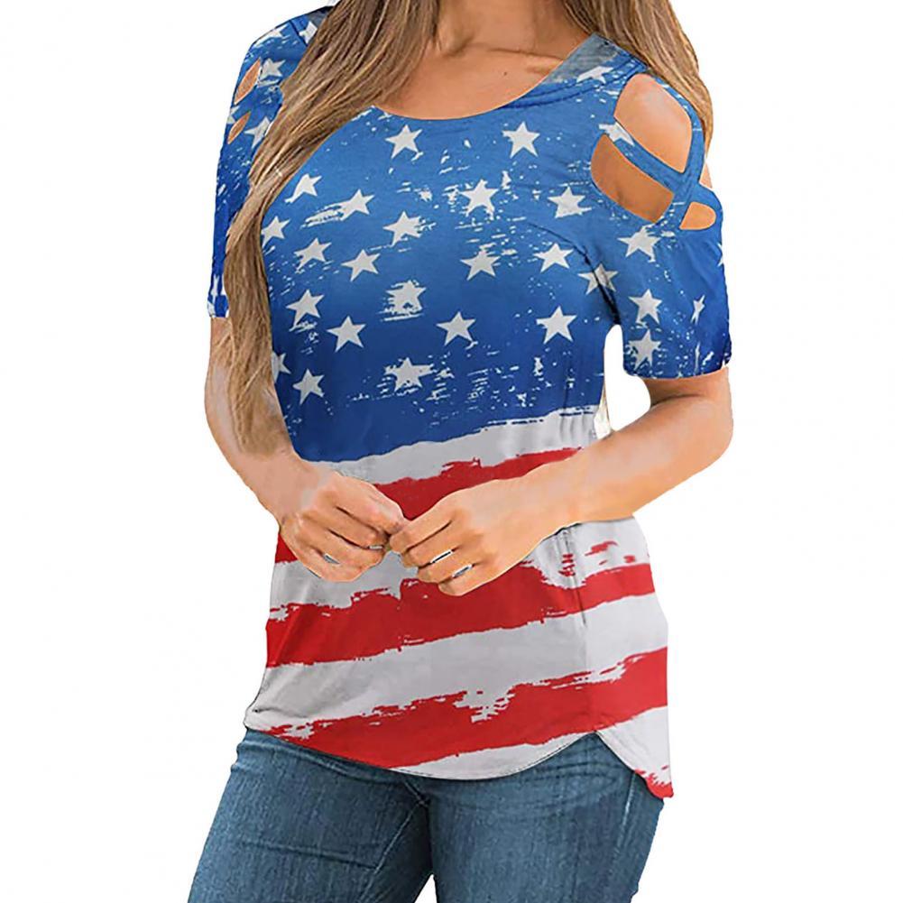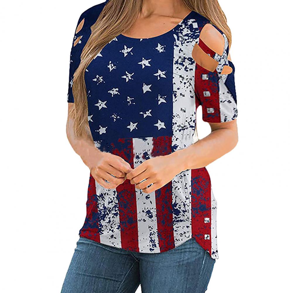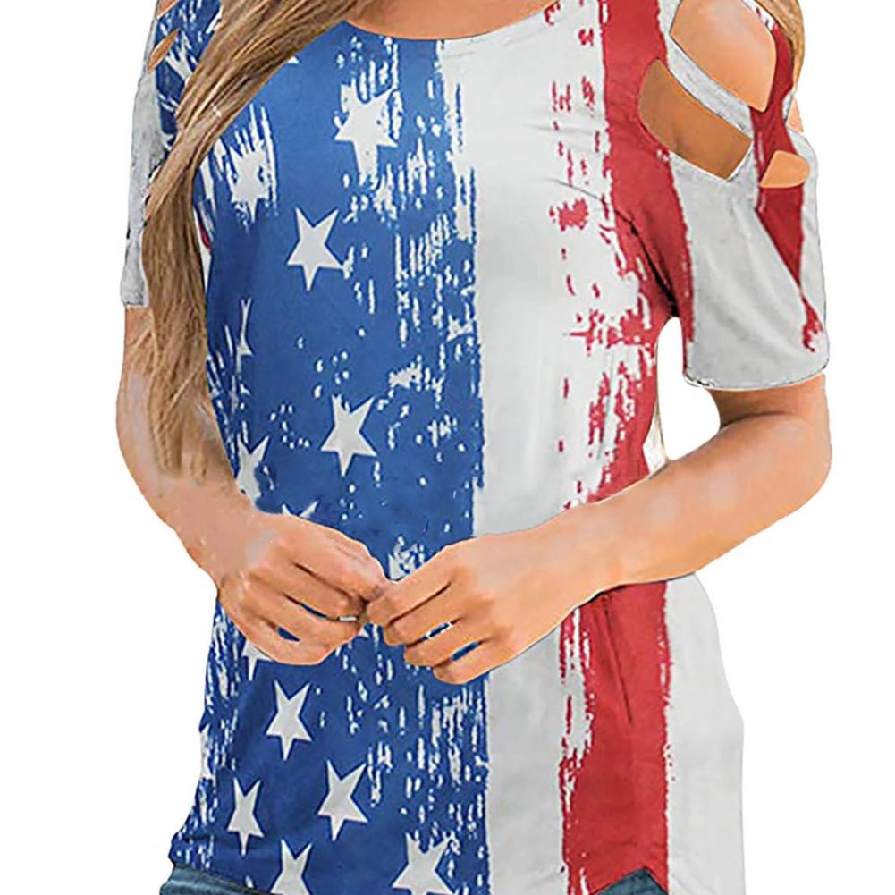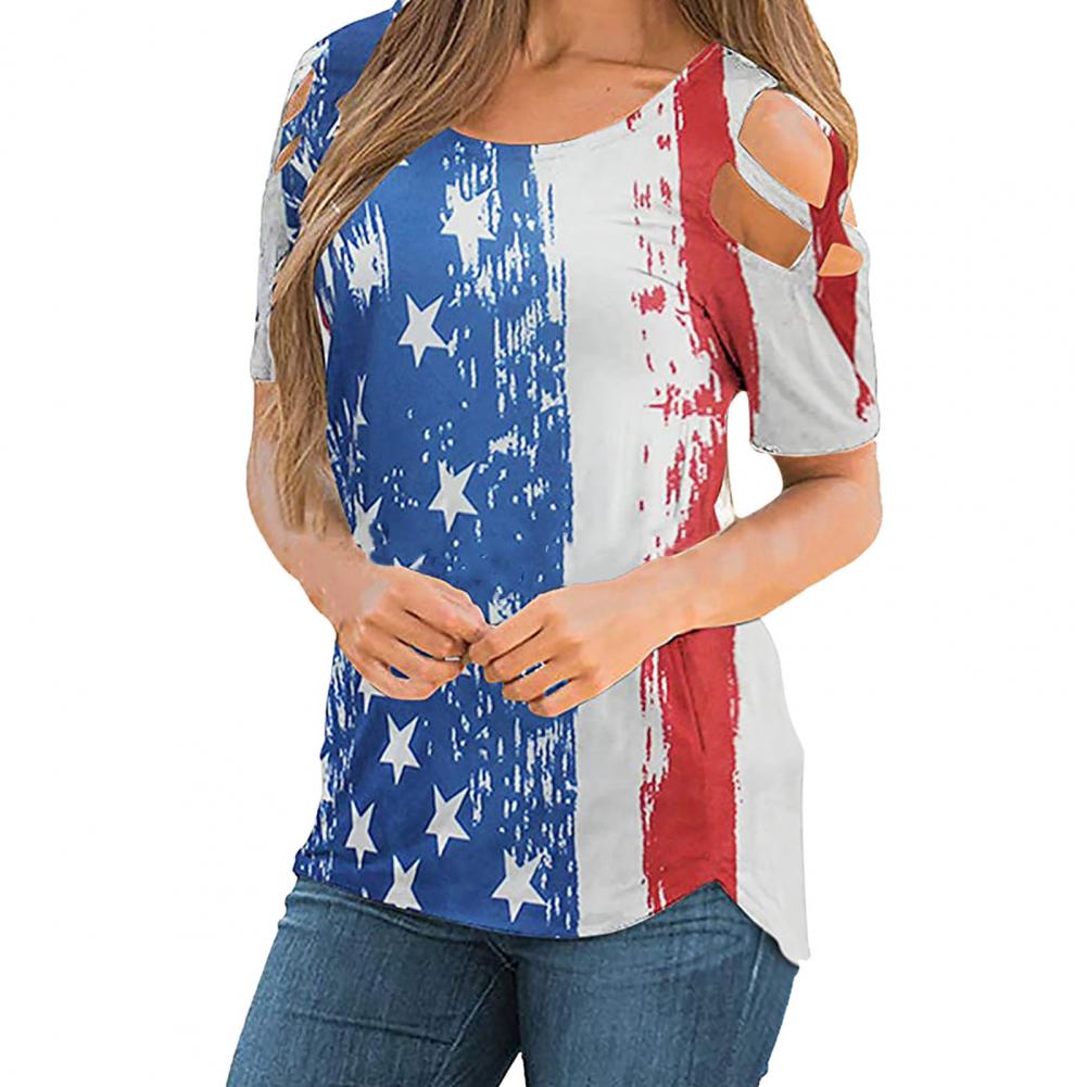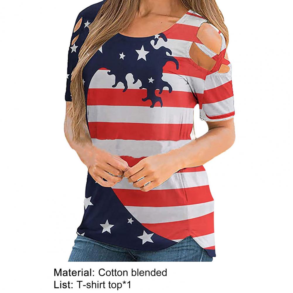 Женская блузка с короткими рукавами и принтом американского флага, патриотический топ в полоску с круглым вырезом, футболка для Дня независимости