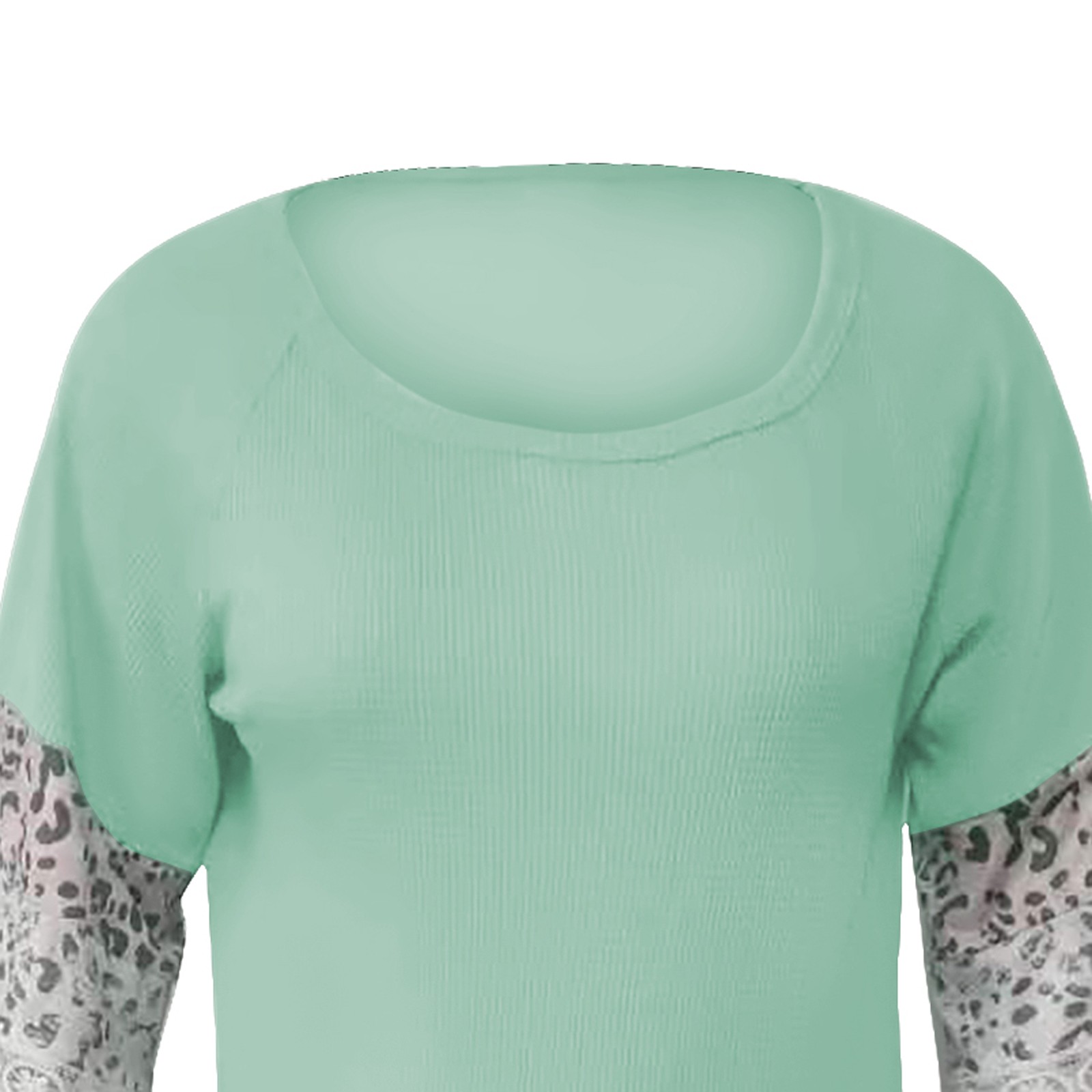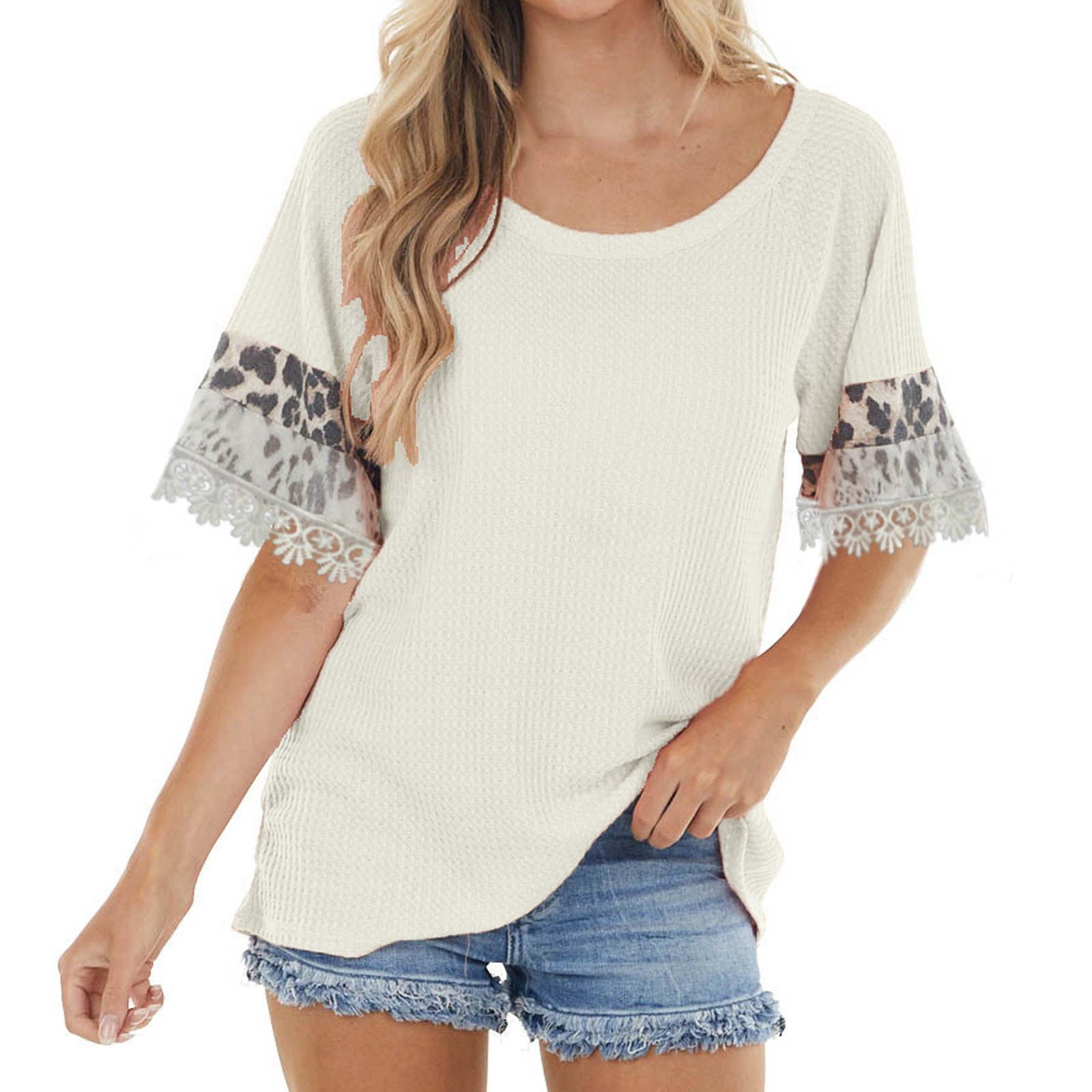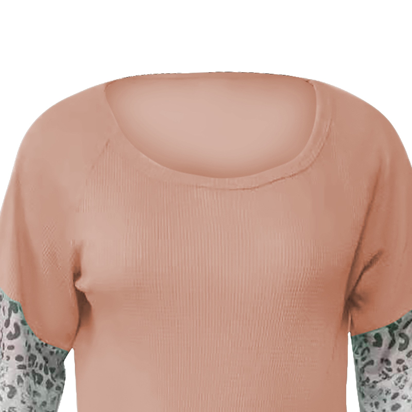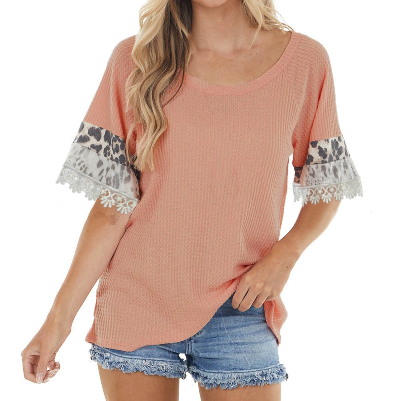 Модный женский свободный удобный Леопардовый топ с круглым вырезом и коротким рукавом