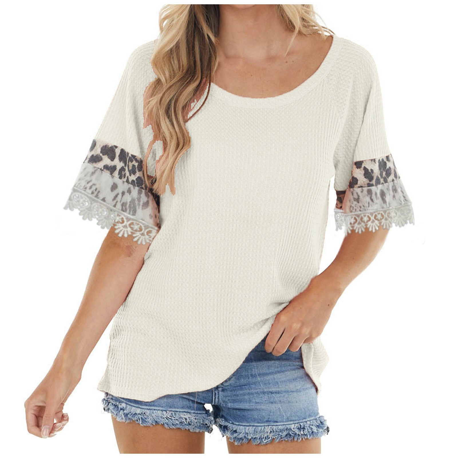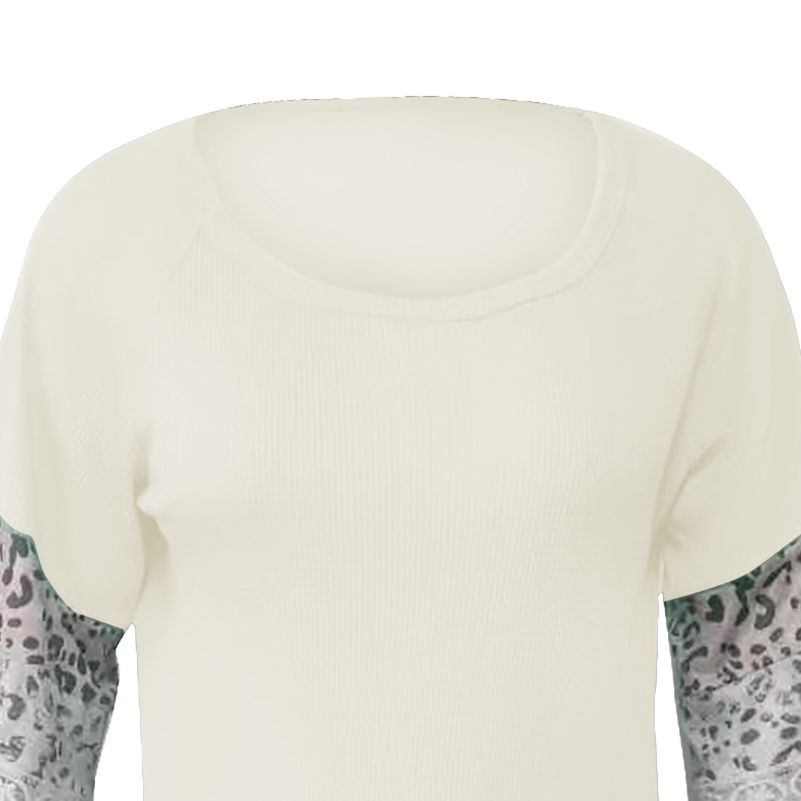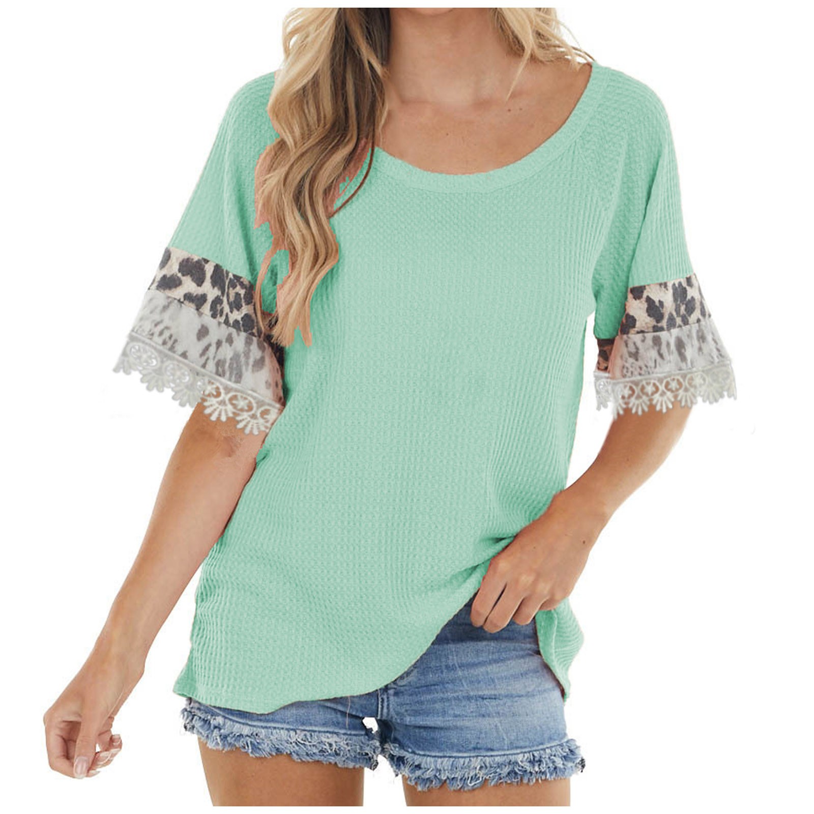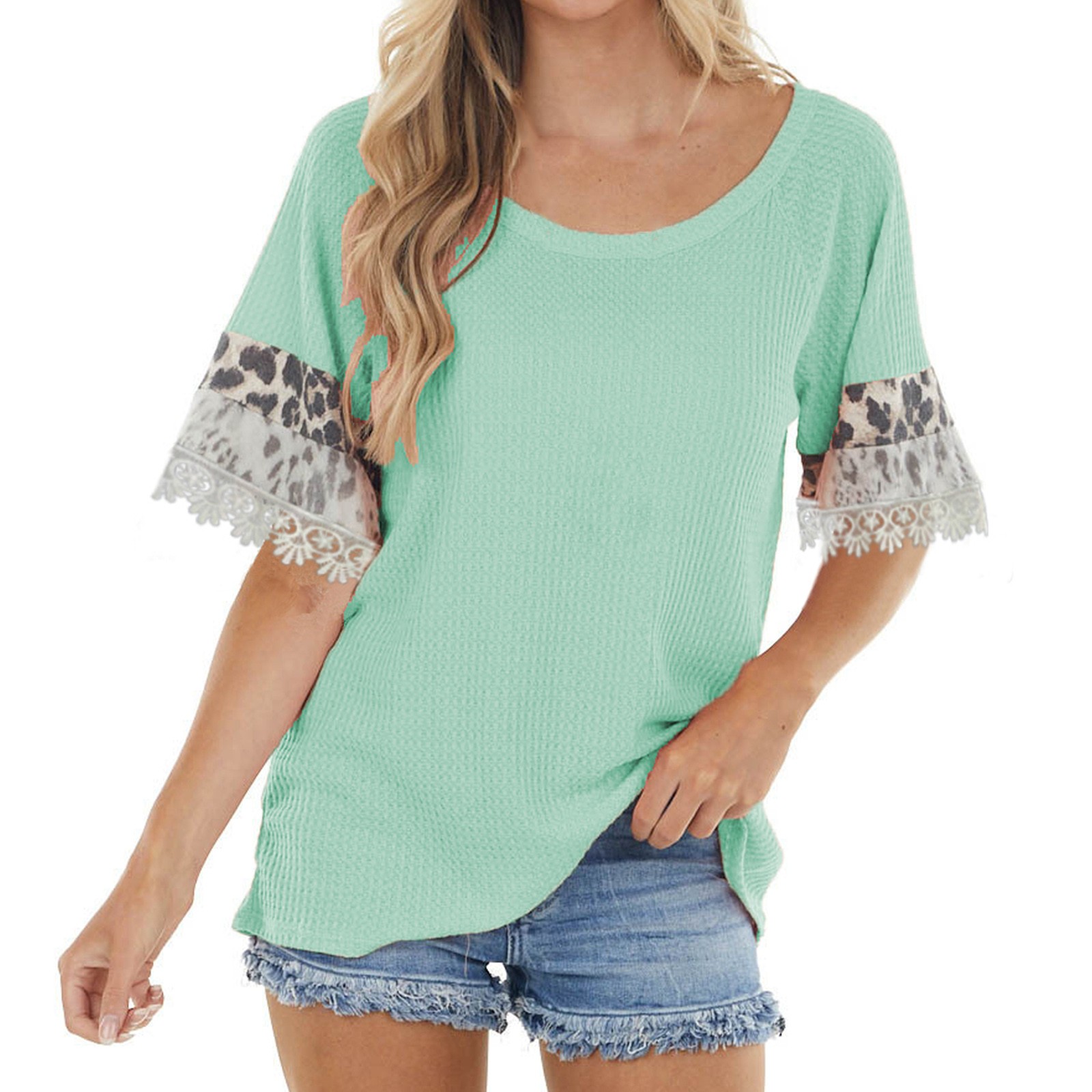 Модный женский свободный удобный Леопардовый топ с круглым вырезом и коротким рукавом