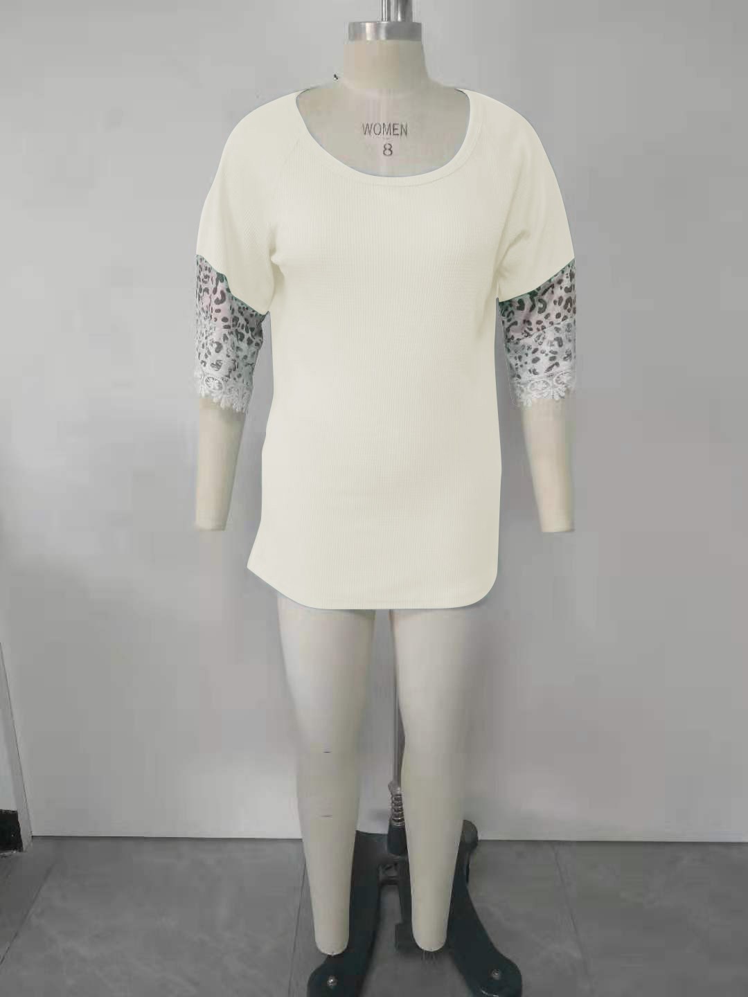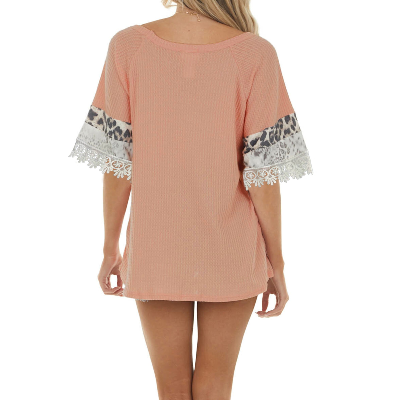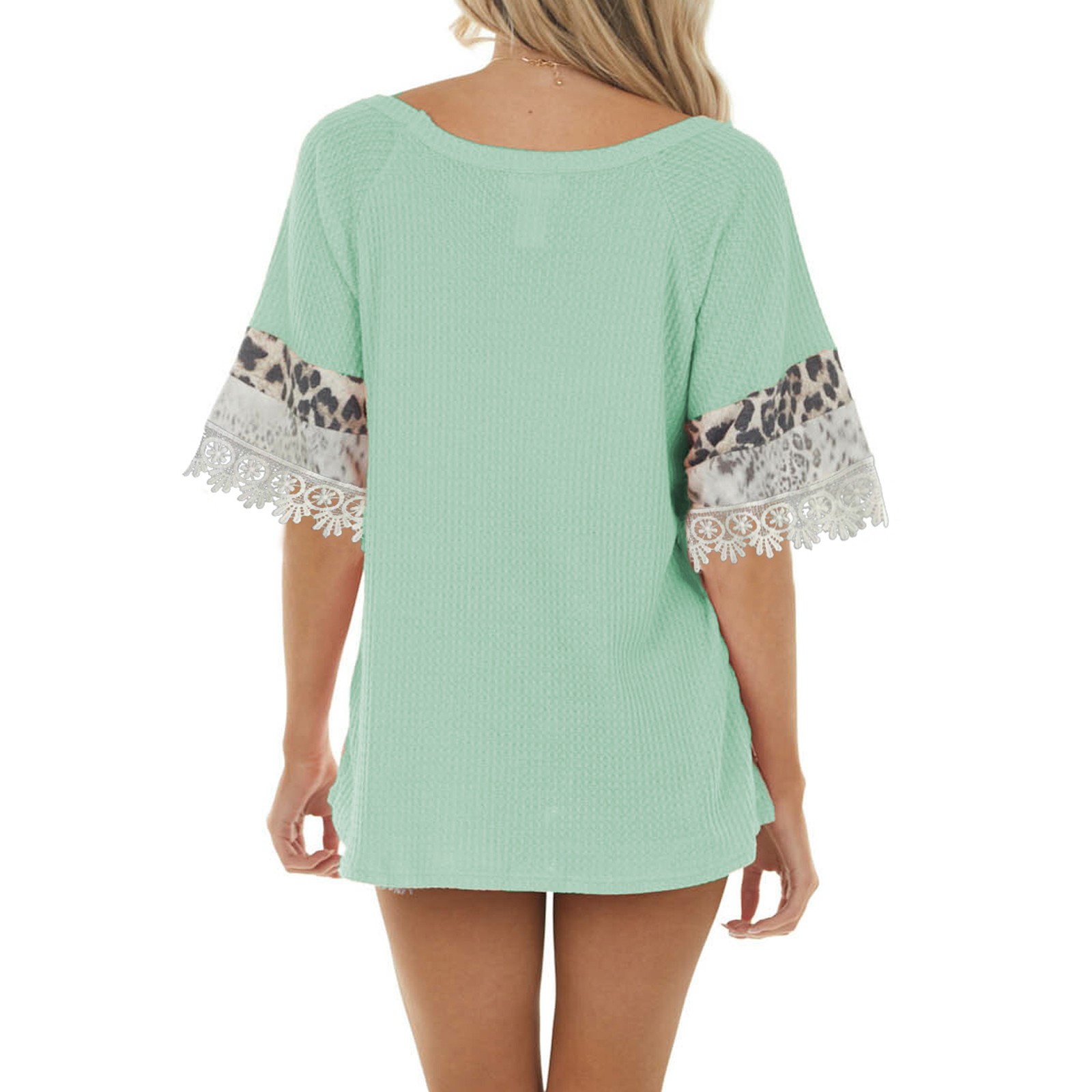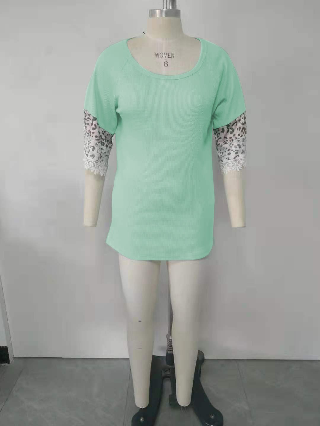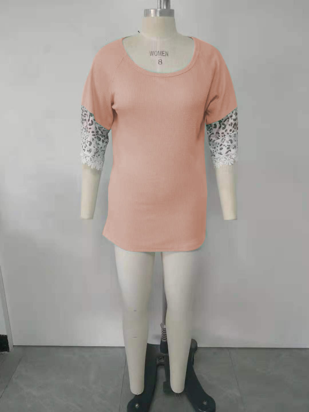 Модный женский свободный удобный Леопардовый топ с круглым вырезом и коротким рукавом