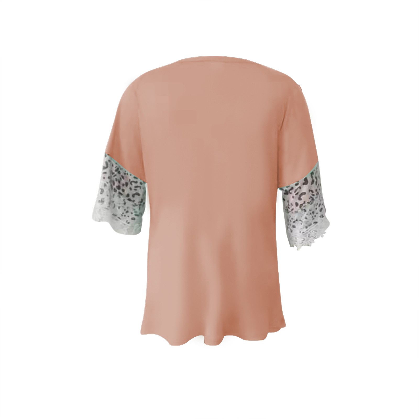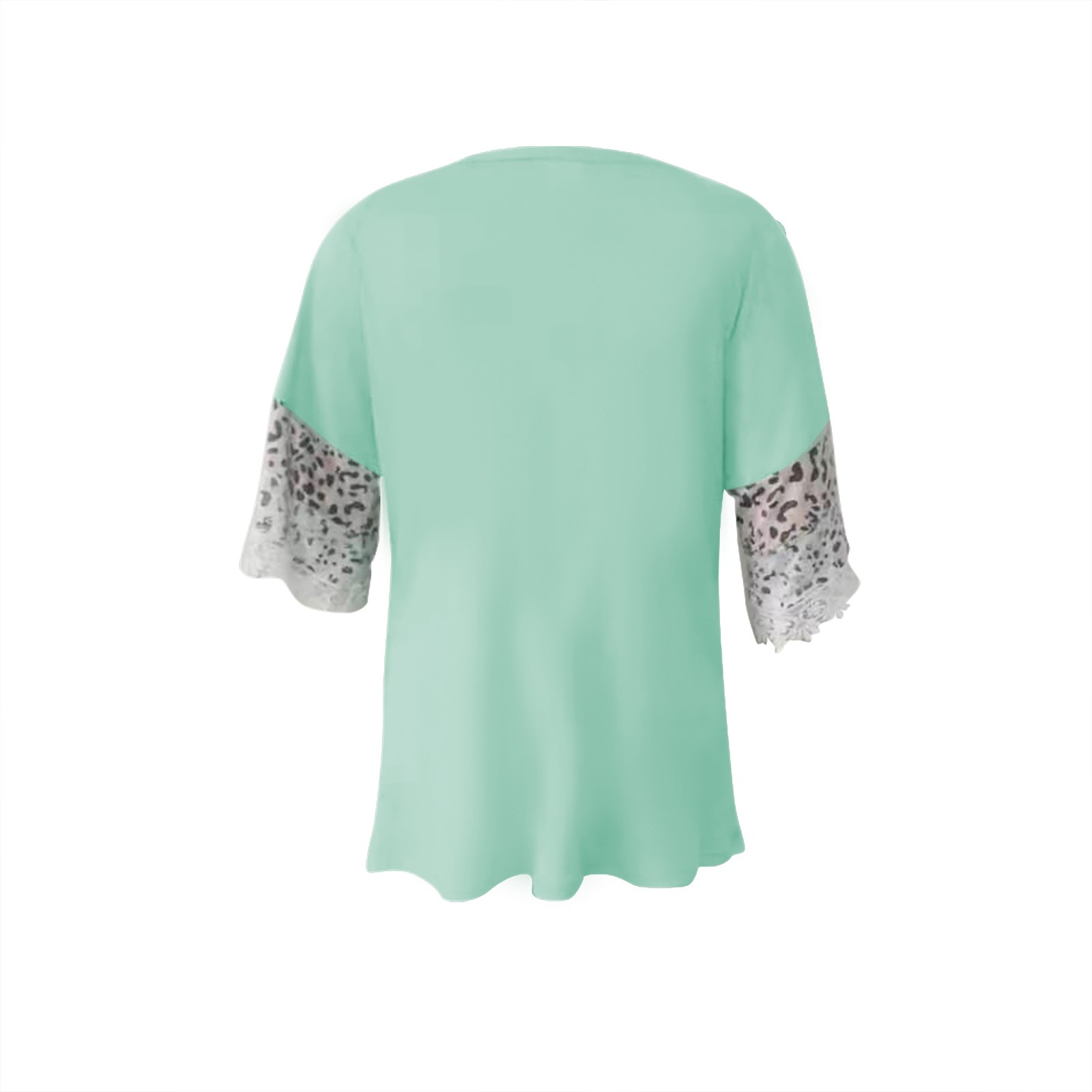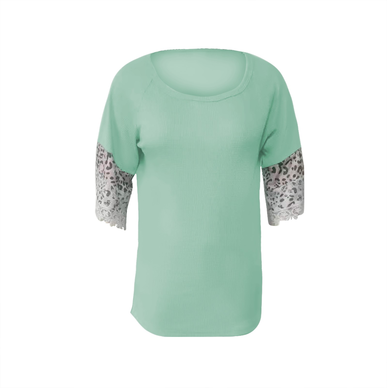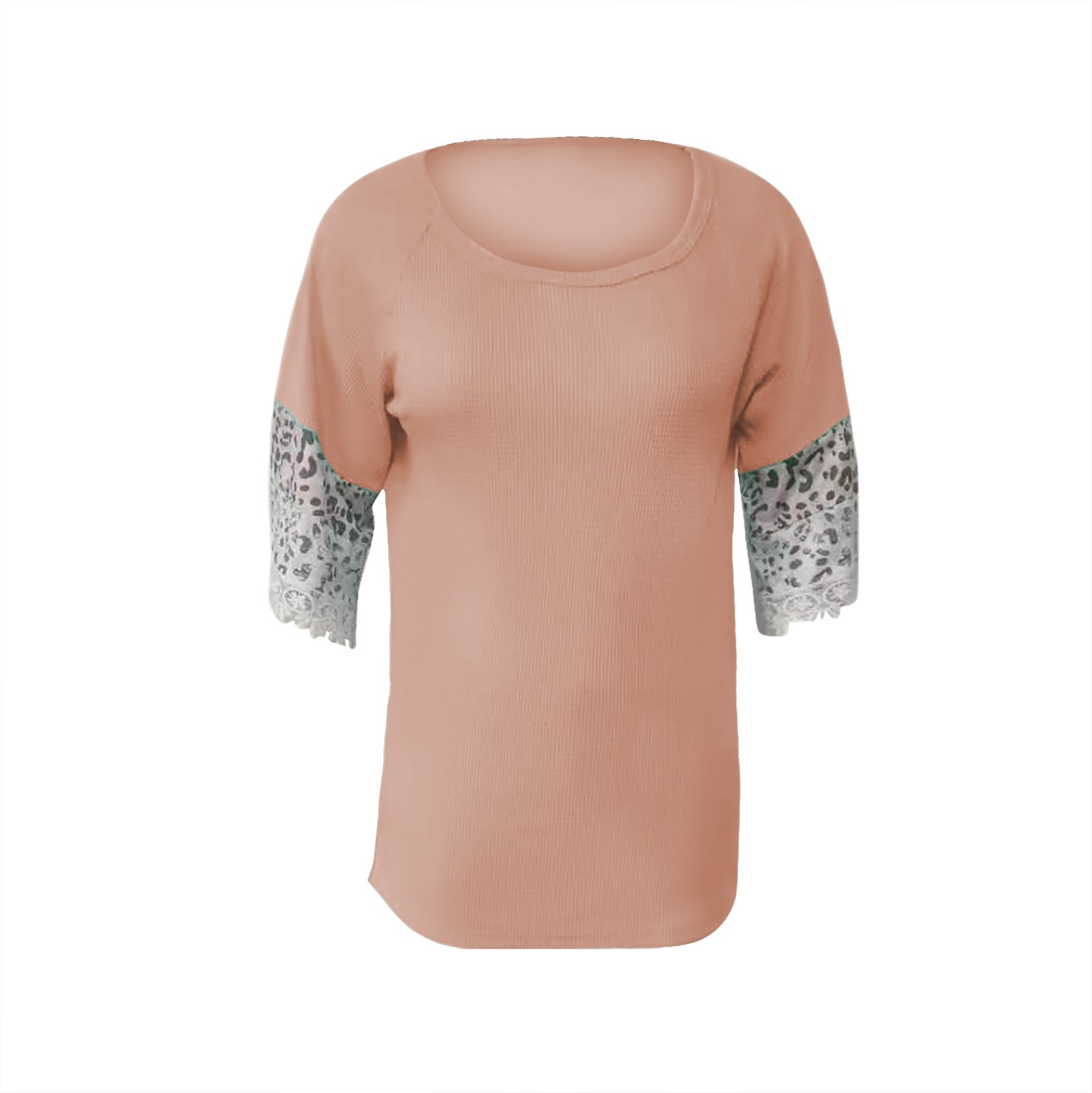 Модный женский свободный удобный Леопардовый топ с круглым вырезом и коротким рукавом