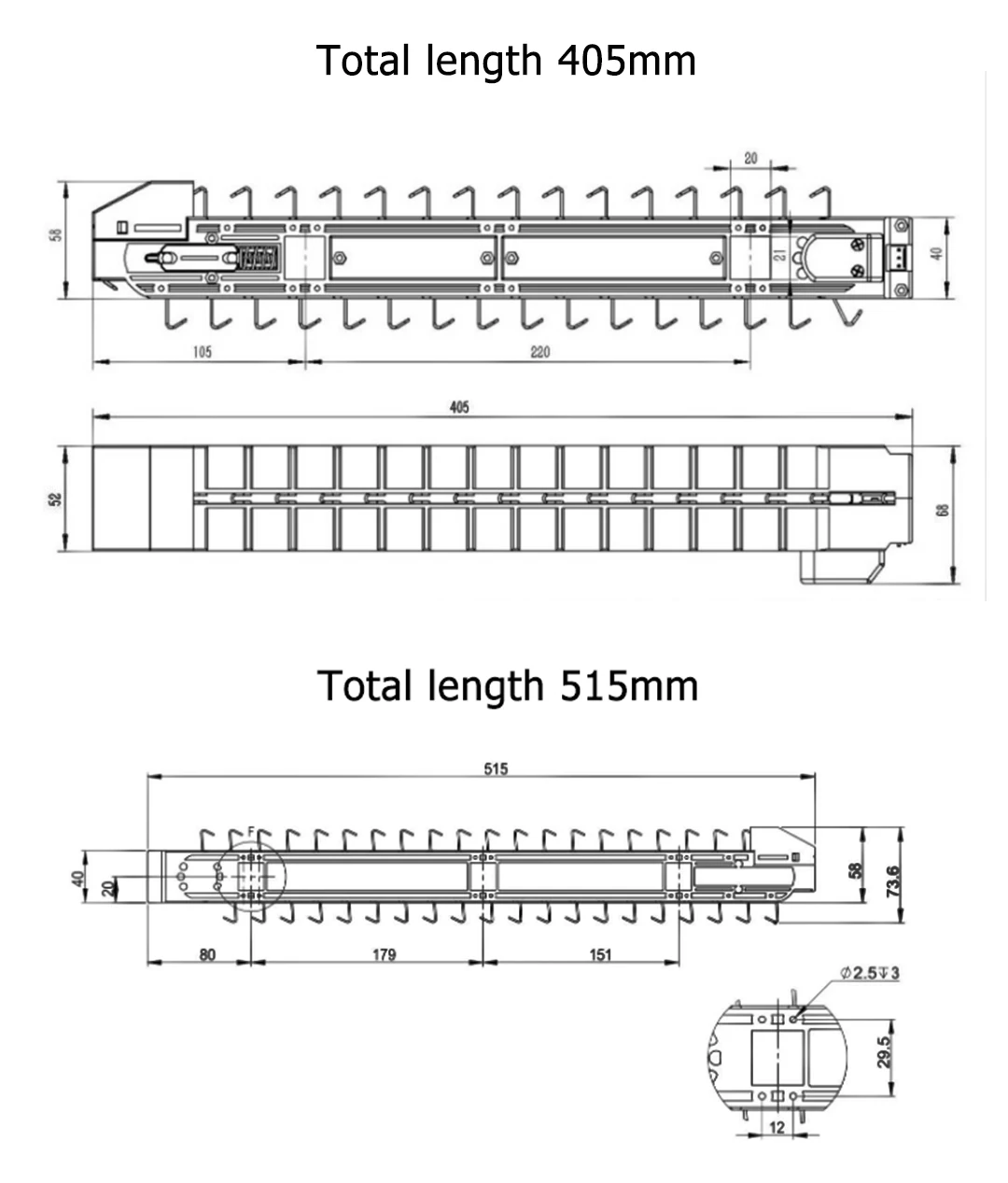 3. Размеры: 515 мм * 68 мм * 58 мм (без подвесного крючка)