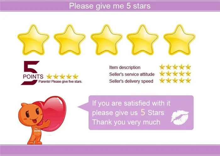 Мы расцениваем клиентов как наших друзей. Мы надеемся, что вы сможете купить у нас больше счастья и меньше беспокойства. Ваша поддержка очень важна для нас. С нами можно связаться следующими способами, не забудьте оставить нам отзыв (5 звезд).