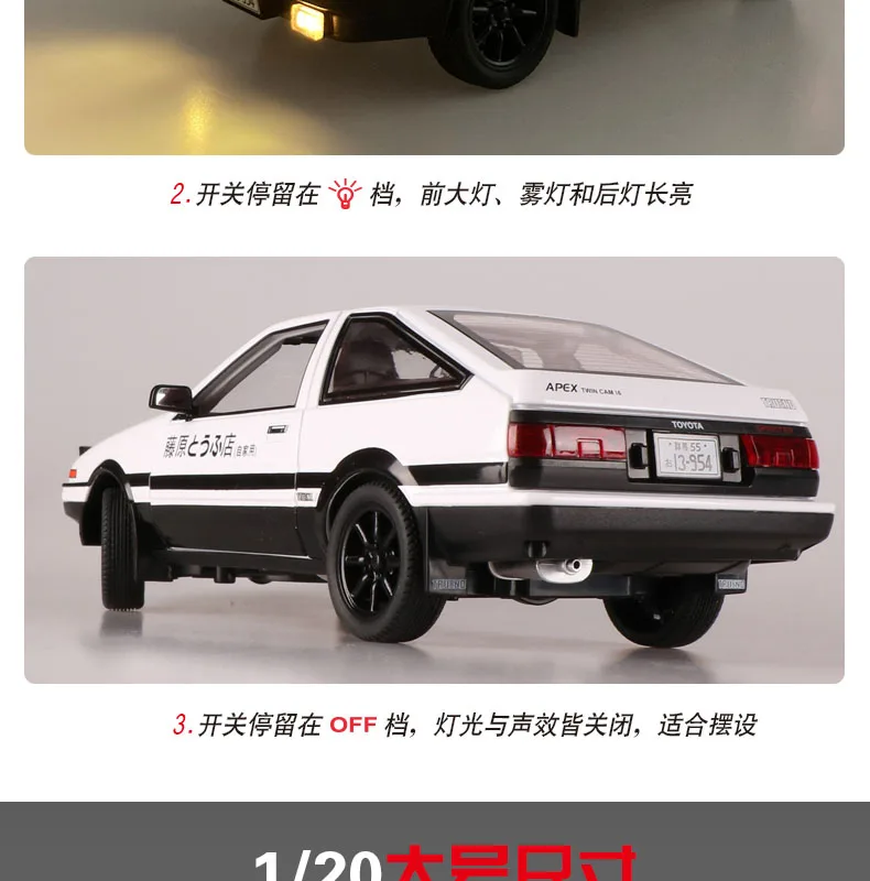 KIDAMI 1:20 новая литая под давлением машина Начальная D AE86 модель автомобиля коллекция звука и светильник для детей