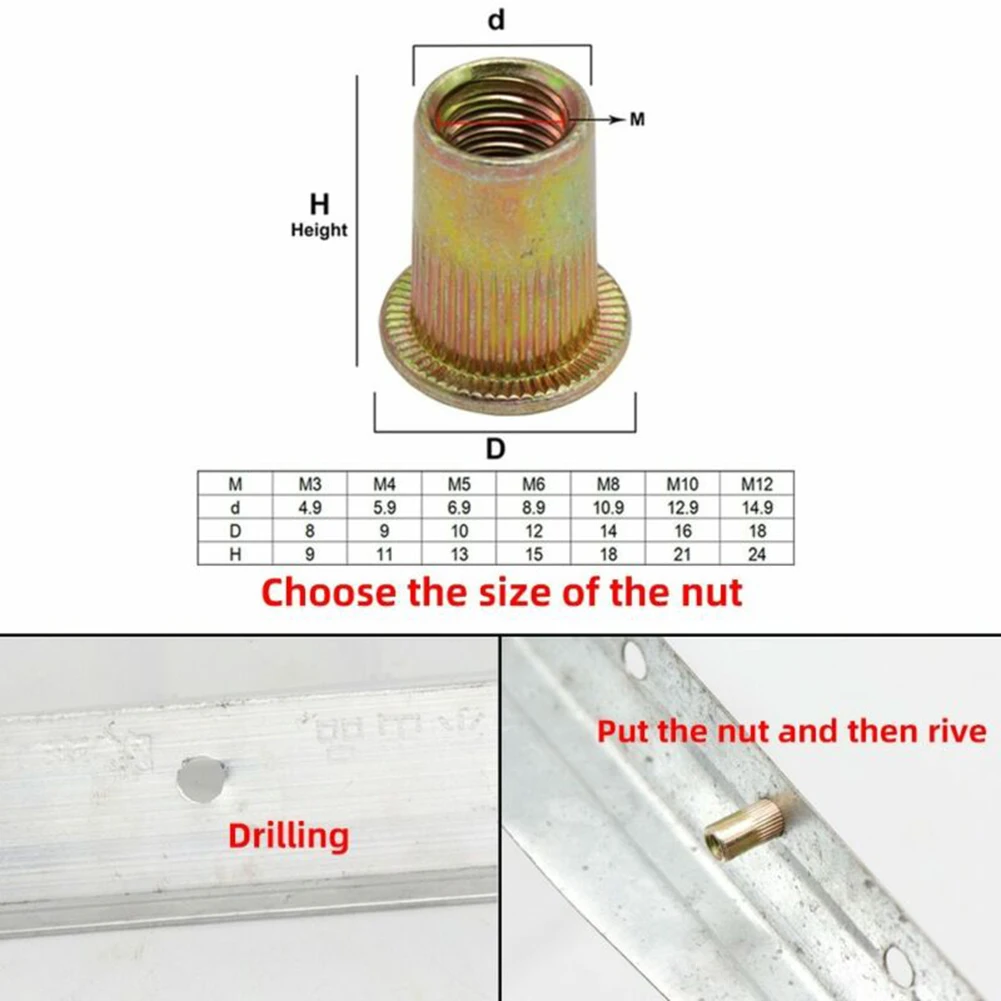 * Клепальная гайка и гайка должны быть готовы к сборке. Простота в использовании и предотвращение потери.
