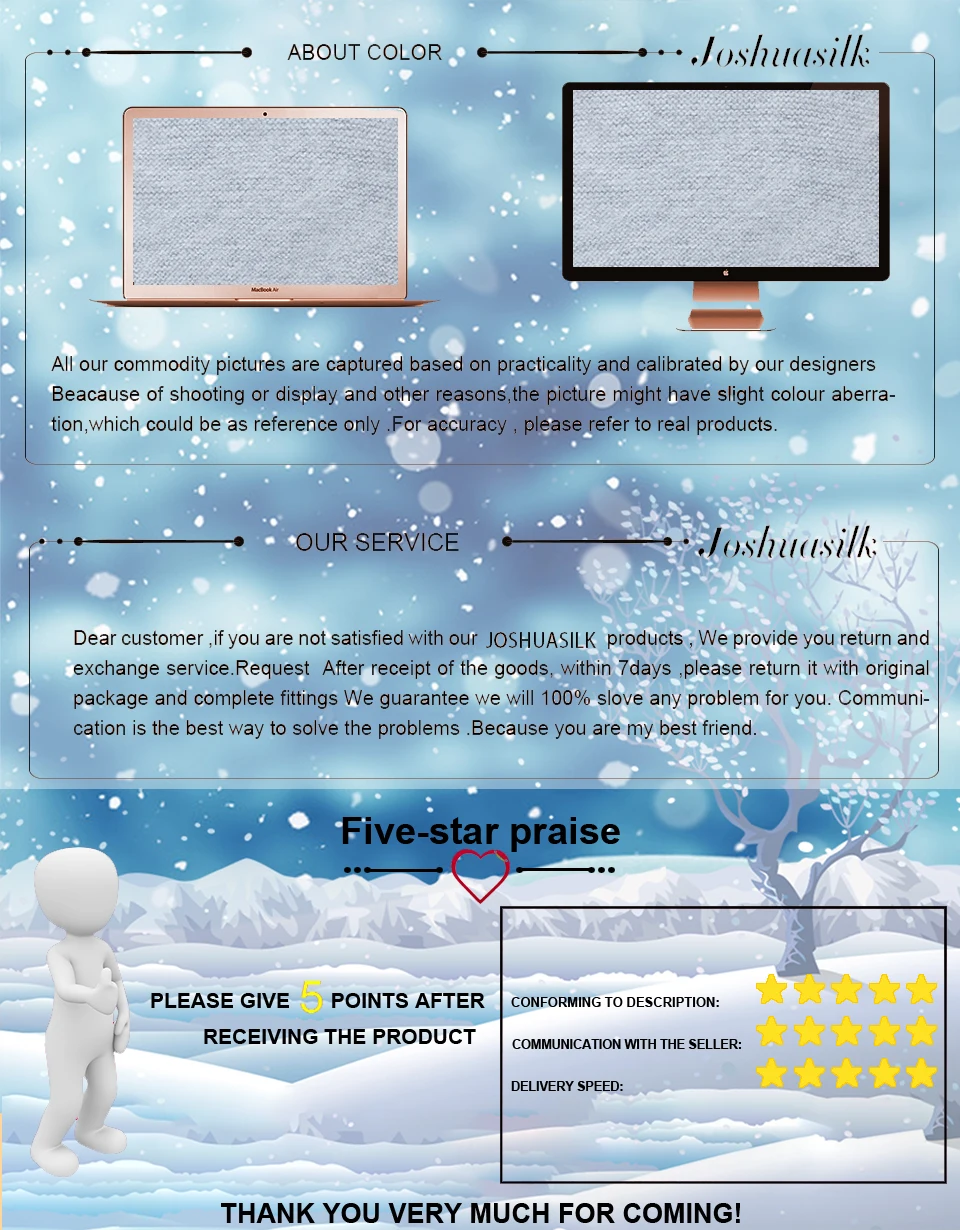 Магазина Joshuasilk Store работает с 15.07.2019. его рейтинг составлет 93.94 баллов из 100. В избранное добавили 1081 покупателя. Средний рейтинг торваров продавца 4.8 в продаже представленно 31 наименований товаров, успешно доставлено 5735 заказов. 709 покупателей оставили отзывы о продавце.