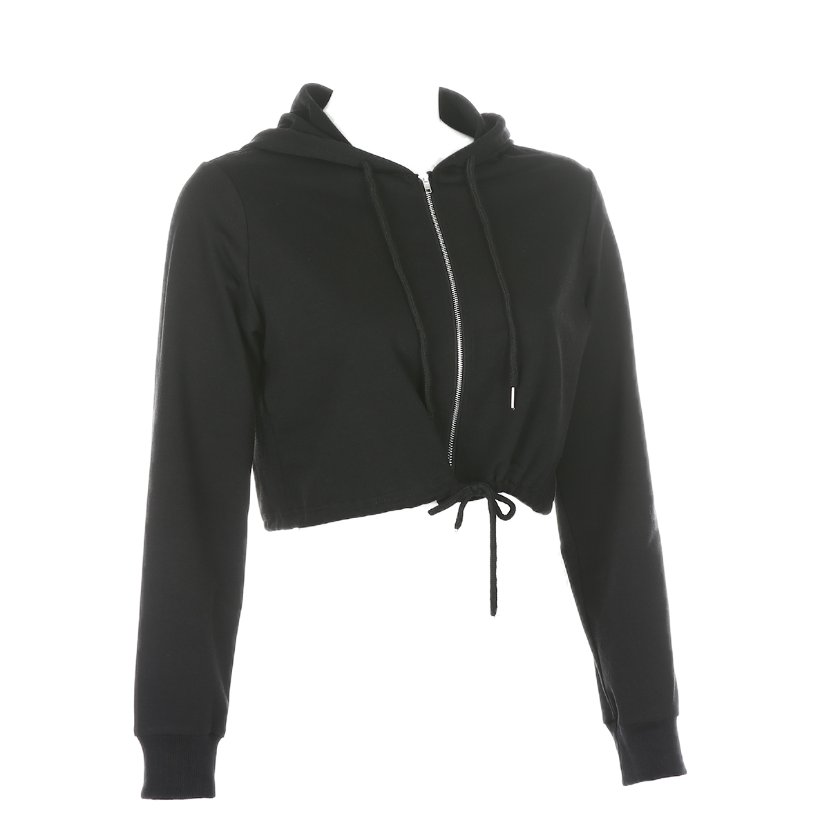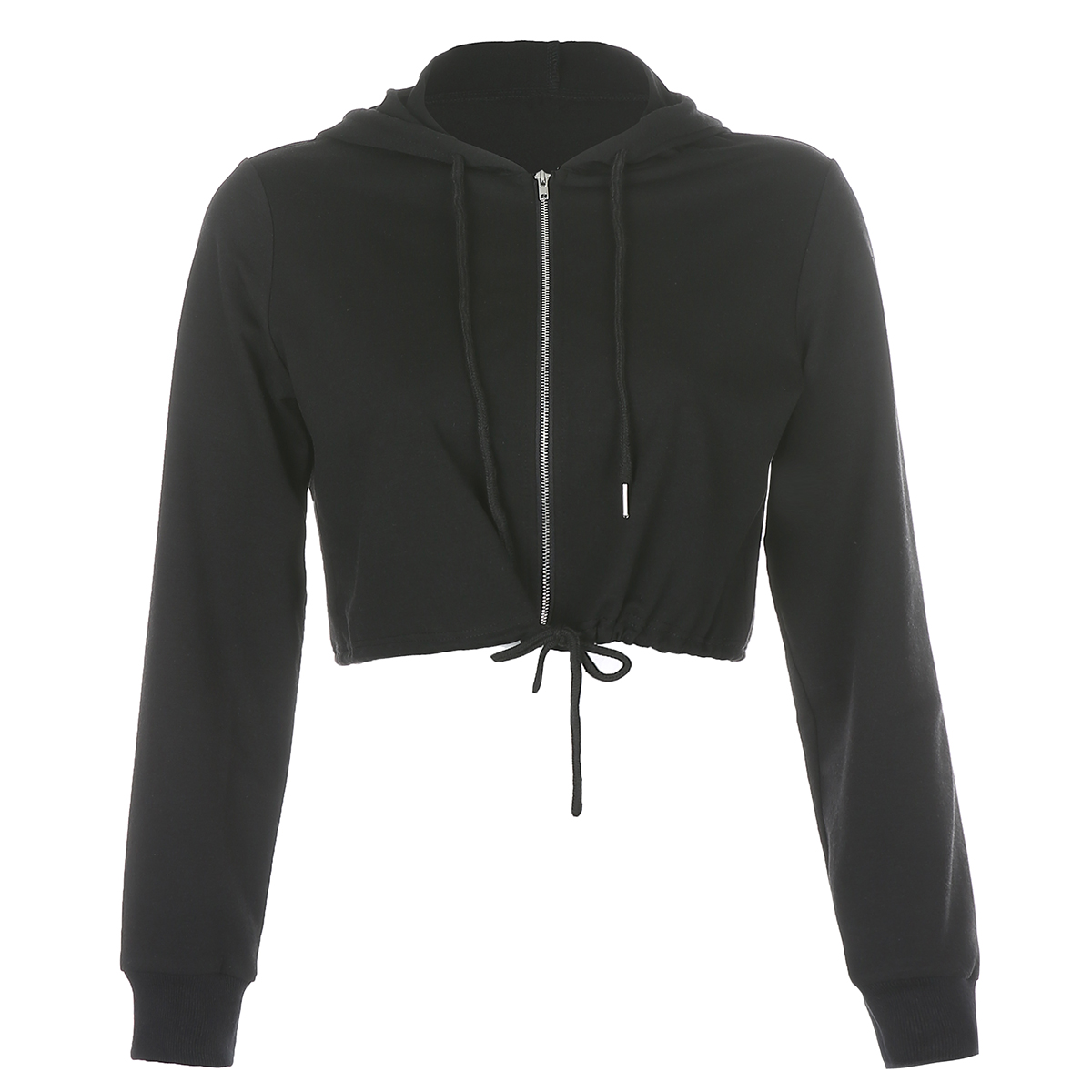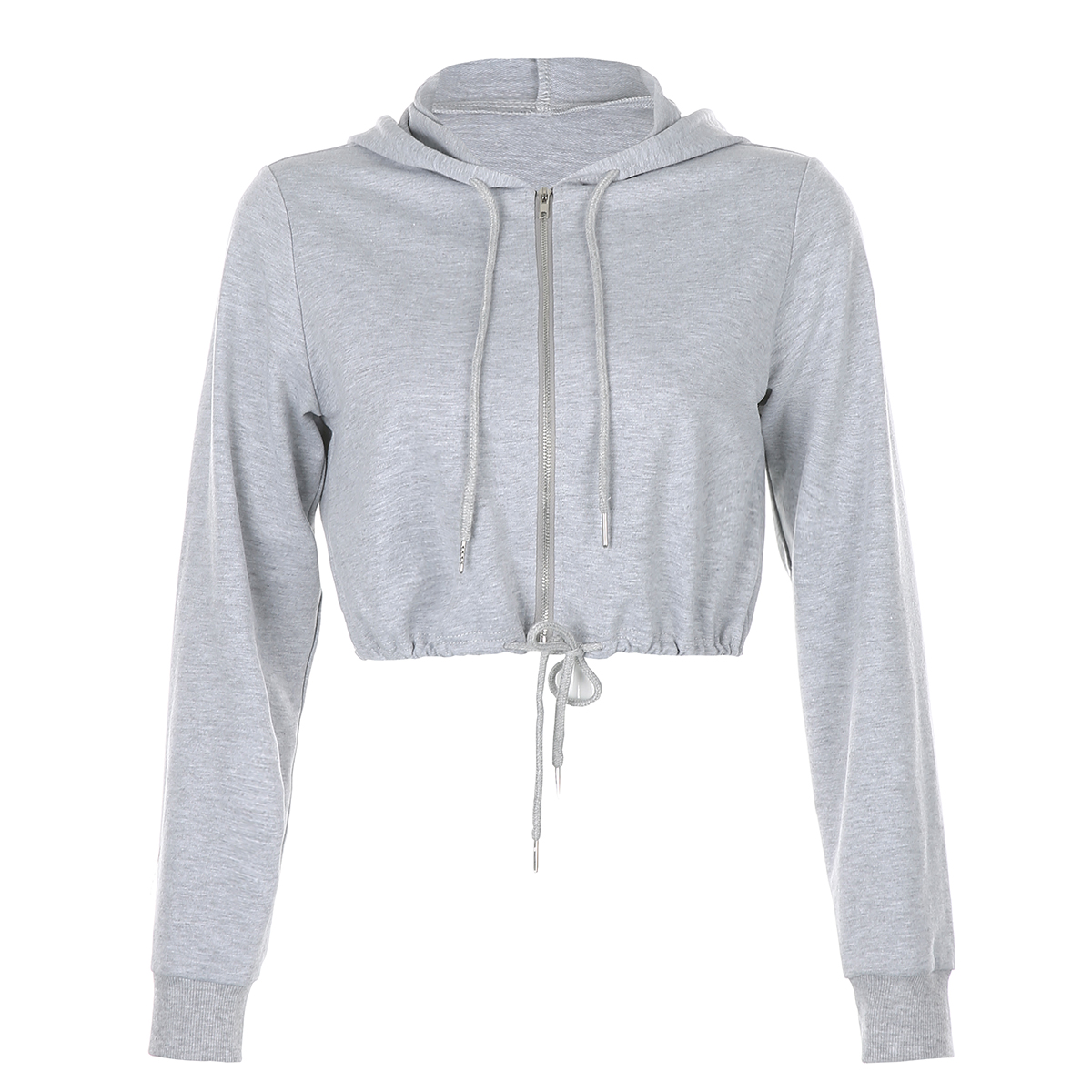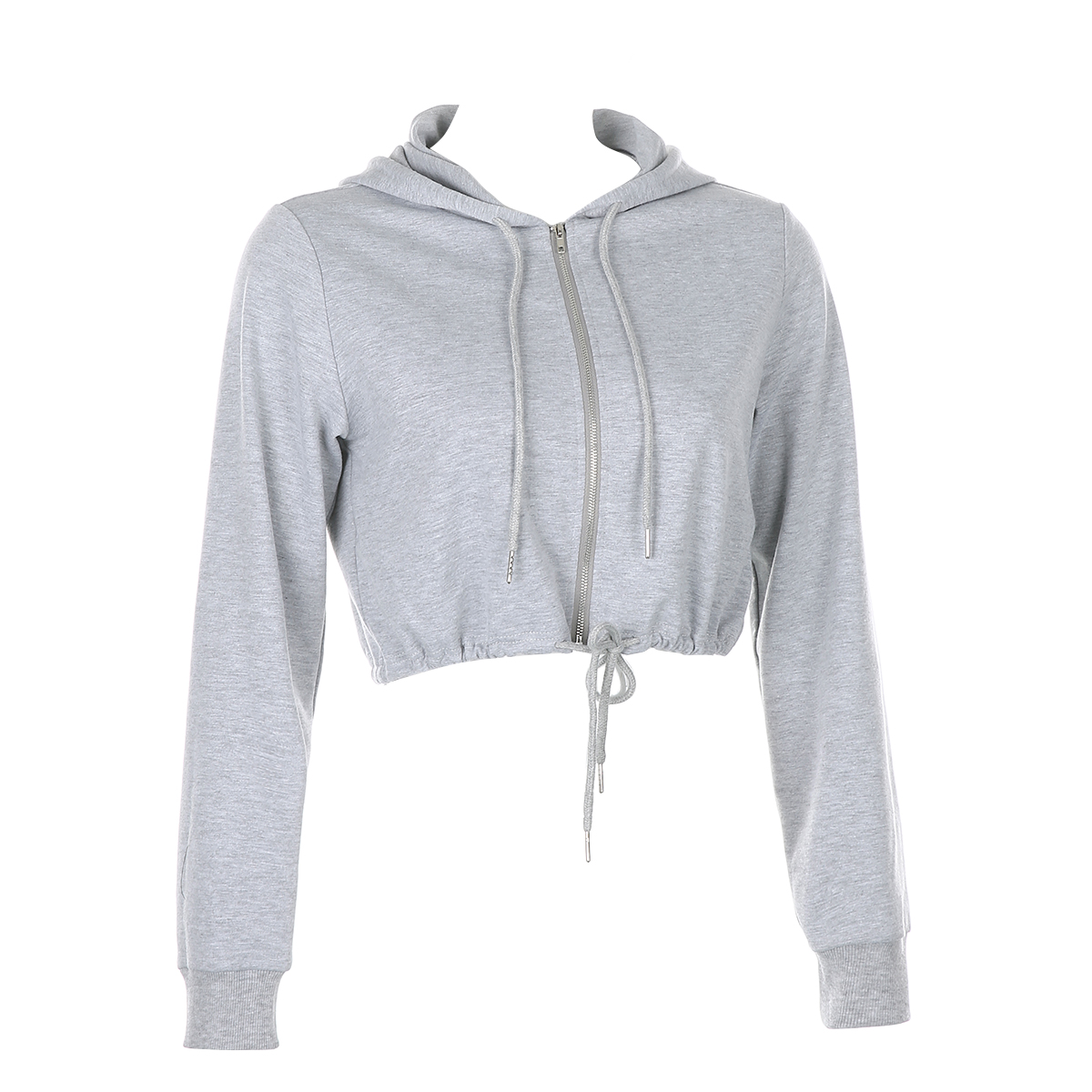 Модный короткий свитер на молнии с капюшоном, осеннее пальто, базовый Повседневный однотонный топ с длинными рукавами и завязками для женщин, Новинка