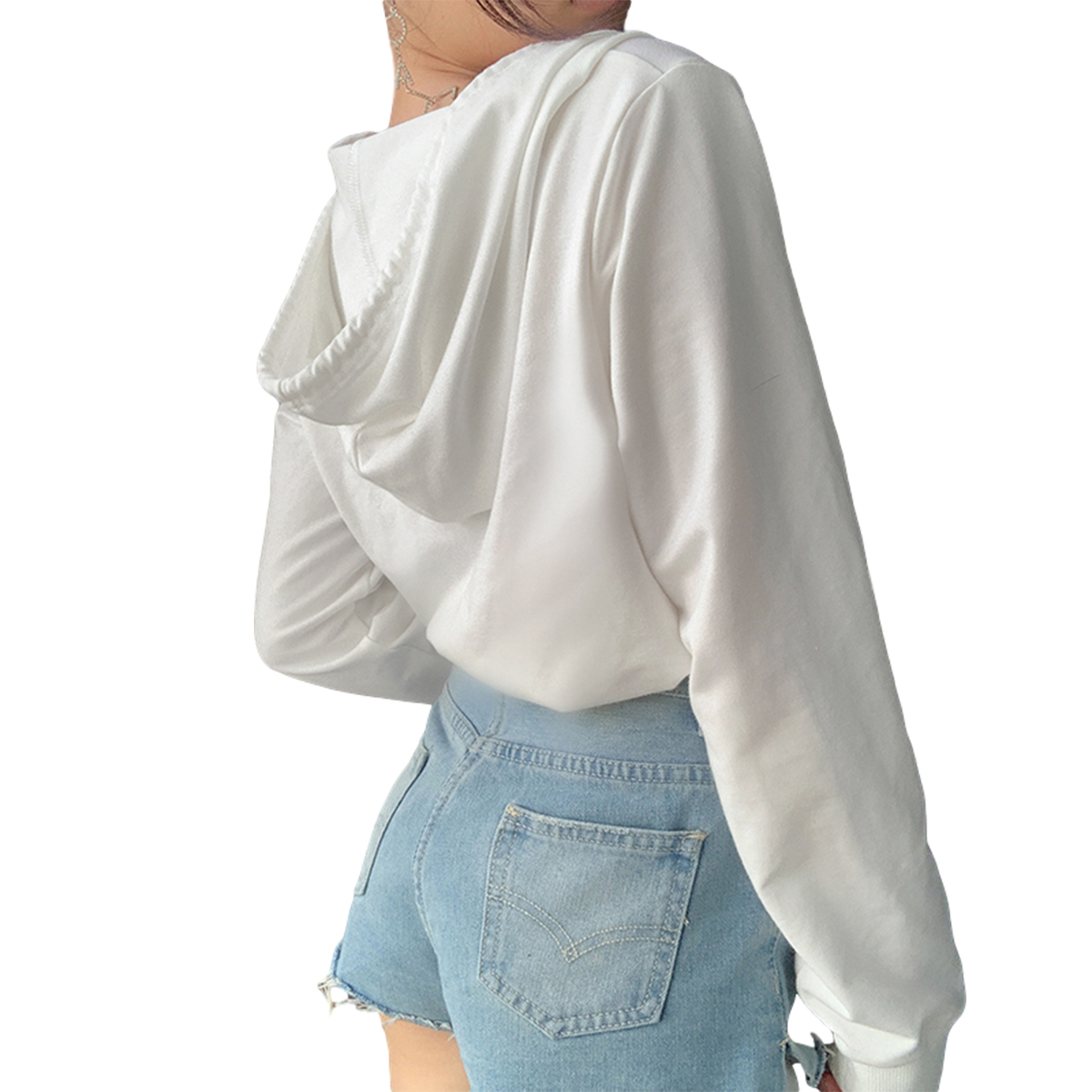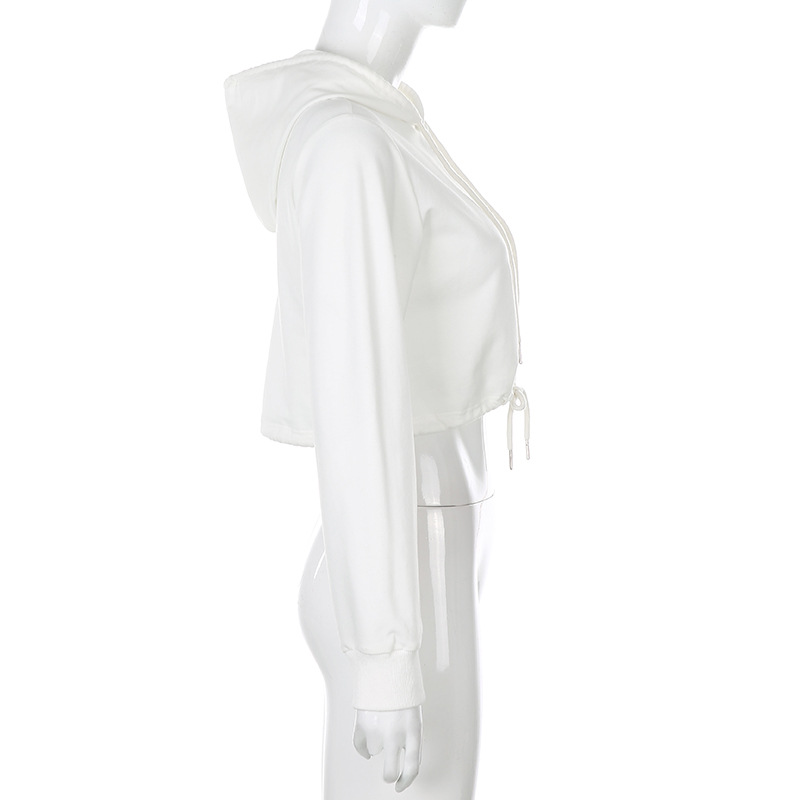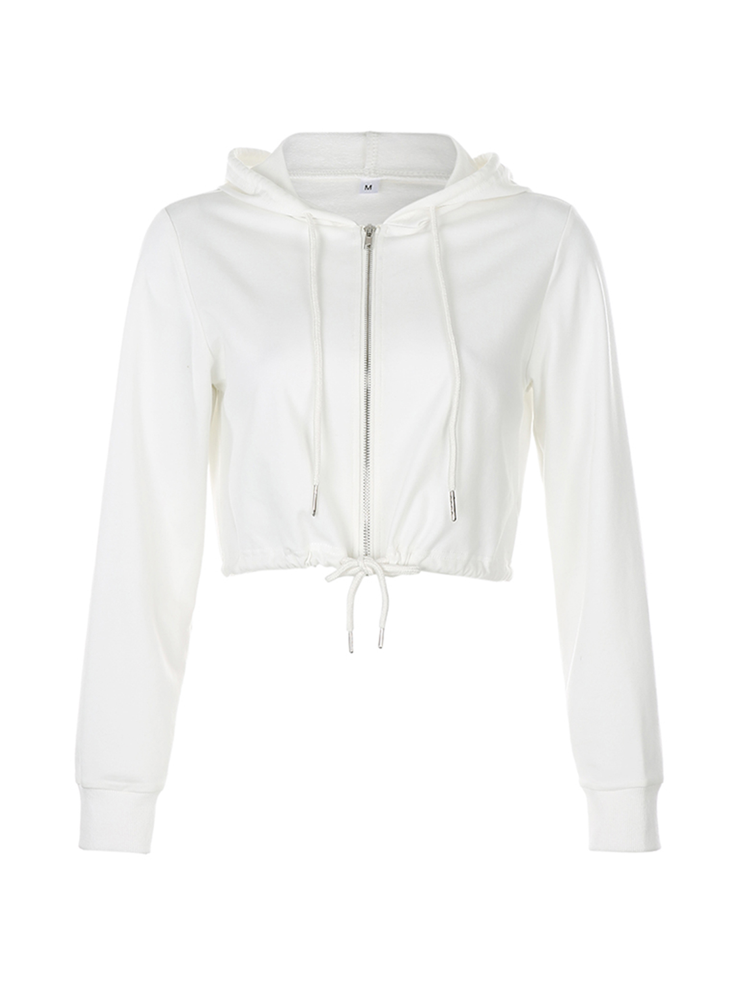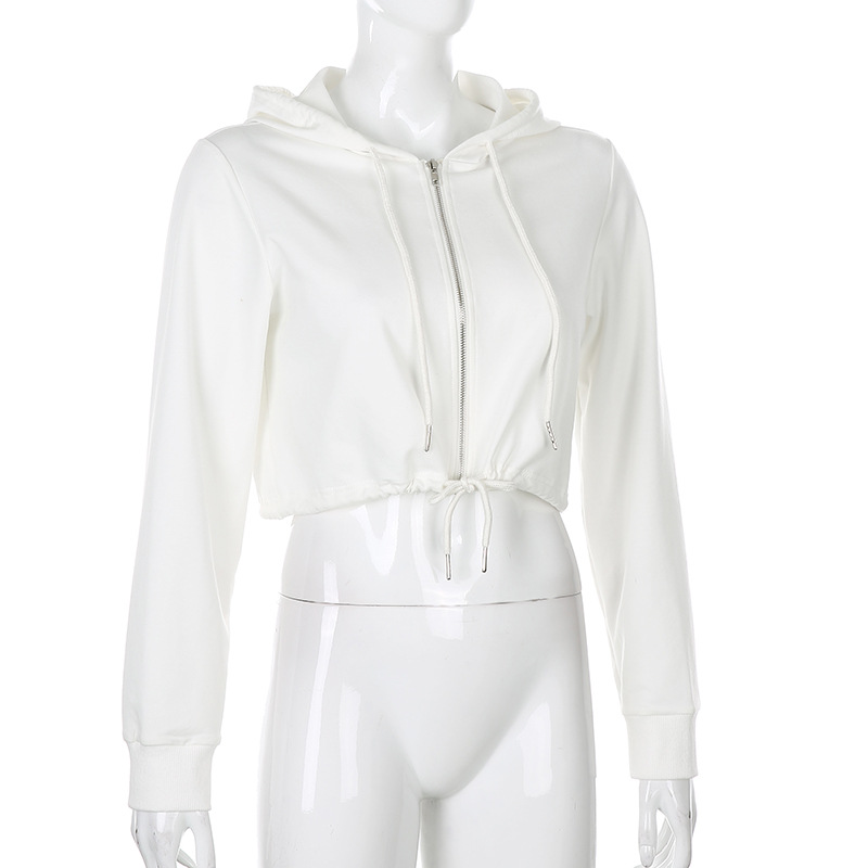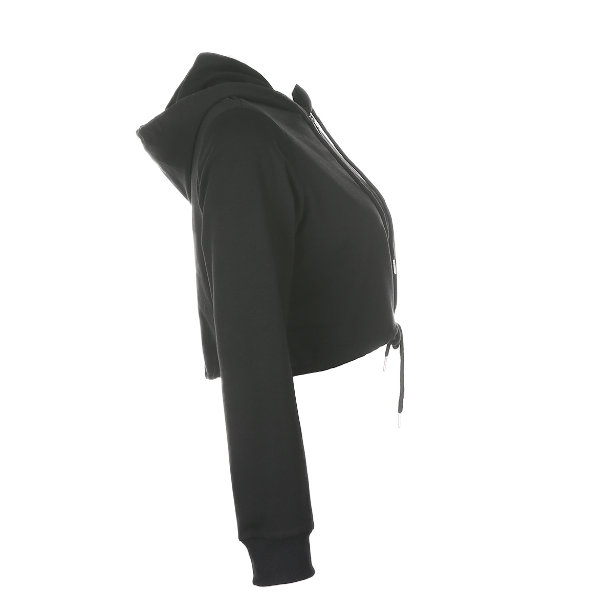 Модный короткий свитер на молнии с капюшоном, осеннее пальто, базовый Повседневный однотонный топ с длинными рукавами и завязками для женщин, Новинка