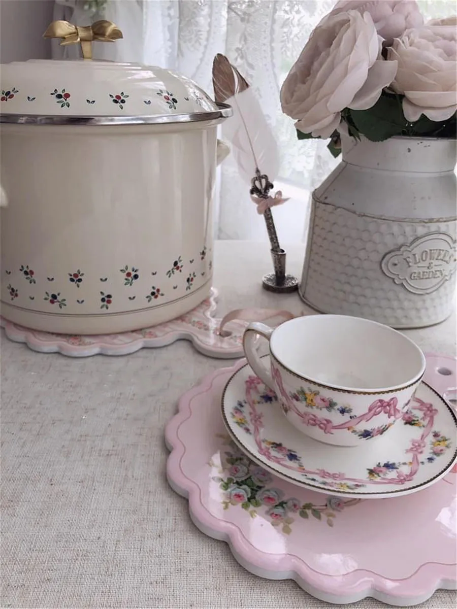 Французские керамические тарелки, розовые печатные подставки, миска, коврик для дома, обеденный стол, Декор, салфетки, анти-ожогов, коврики для стола, маленькие горки