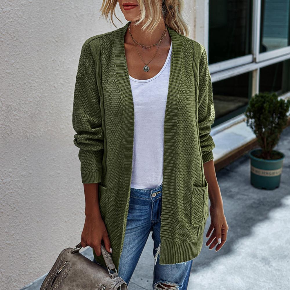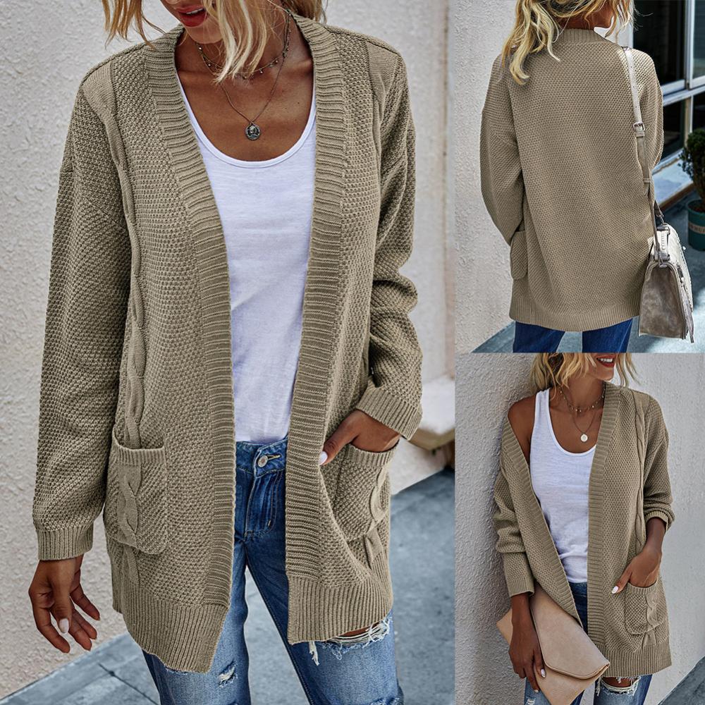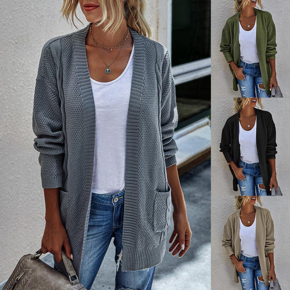 Женский Осенний открытый передний однотонный длинный теплый кардиган, вязаный свитер, пальто
