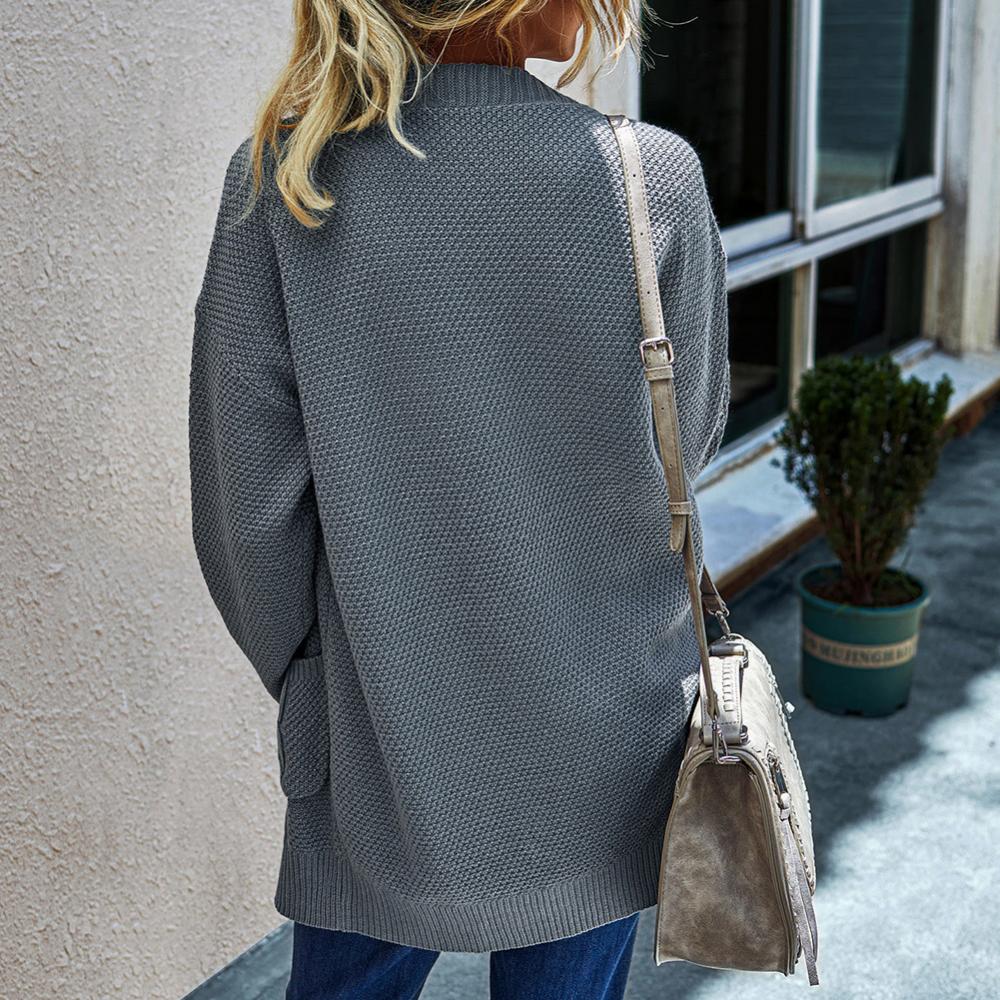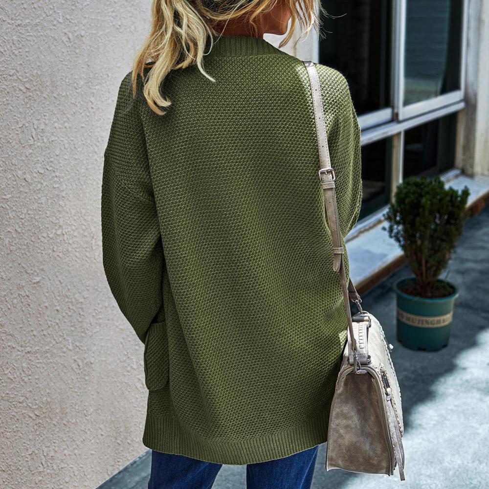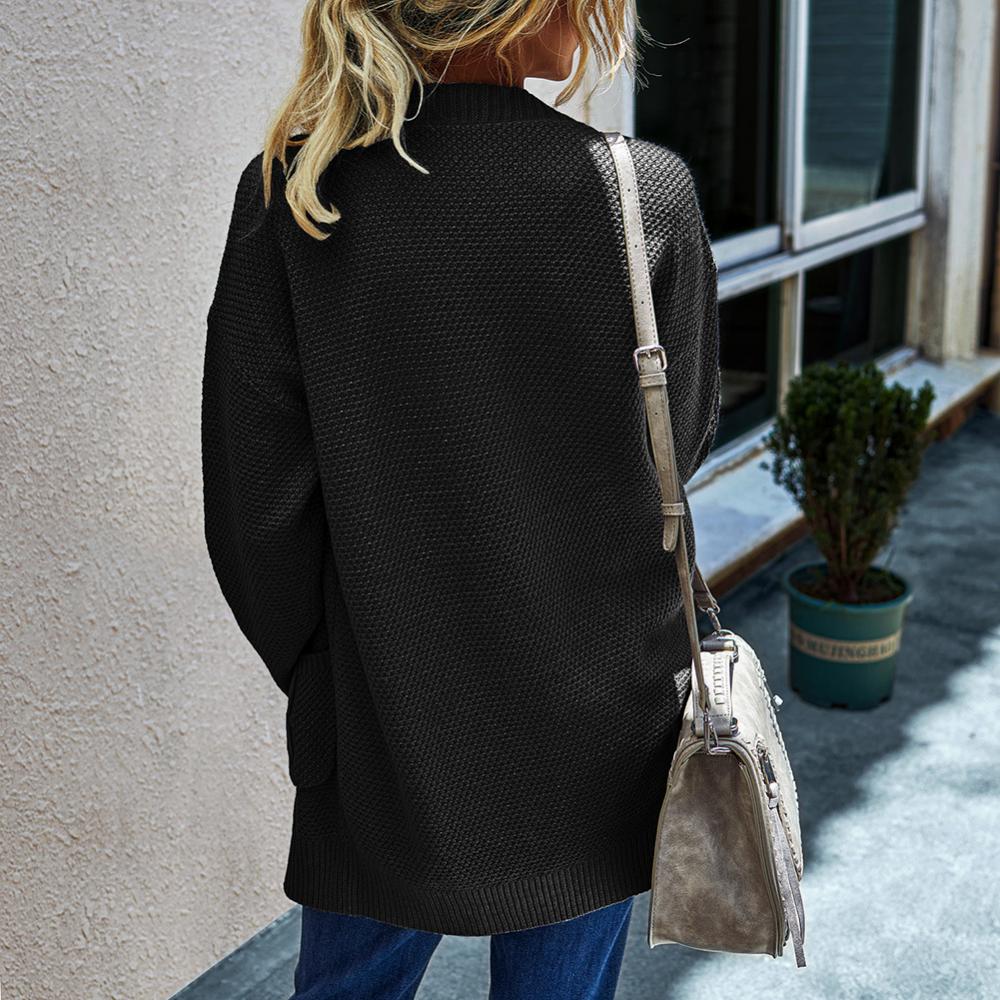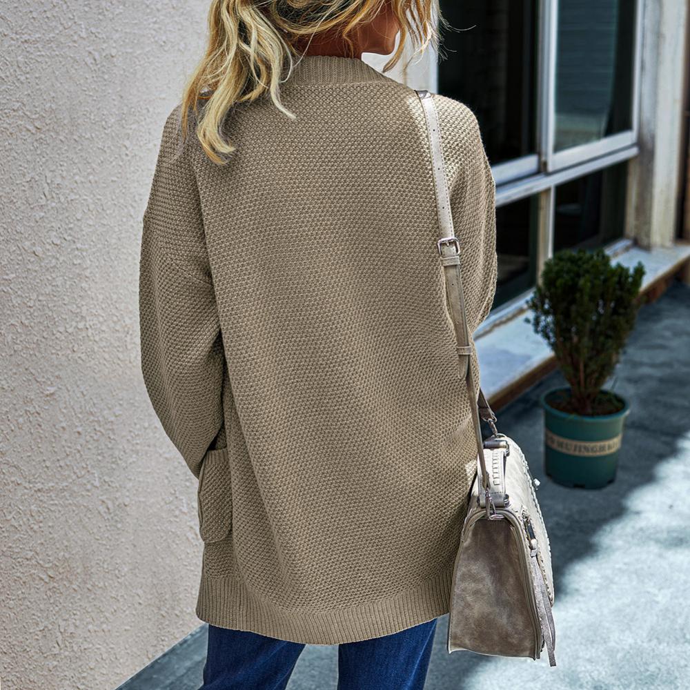 Женский Осенний открытый передний однотонный длинный теплый кардиган, вязаный свитер, пальто