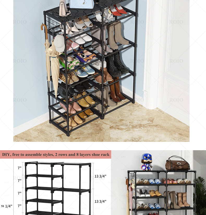 Двухрядная стойка для обуви 37 дюймов шкаф хранения нетканый тканевый