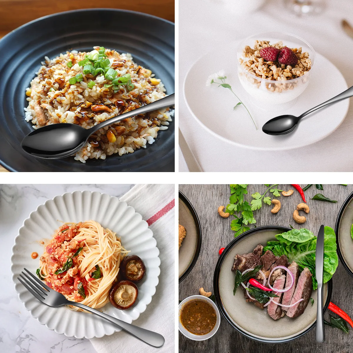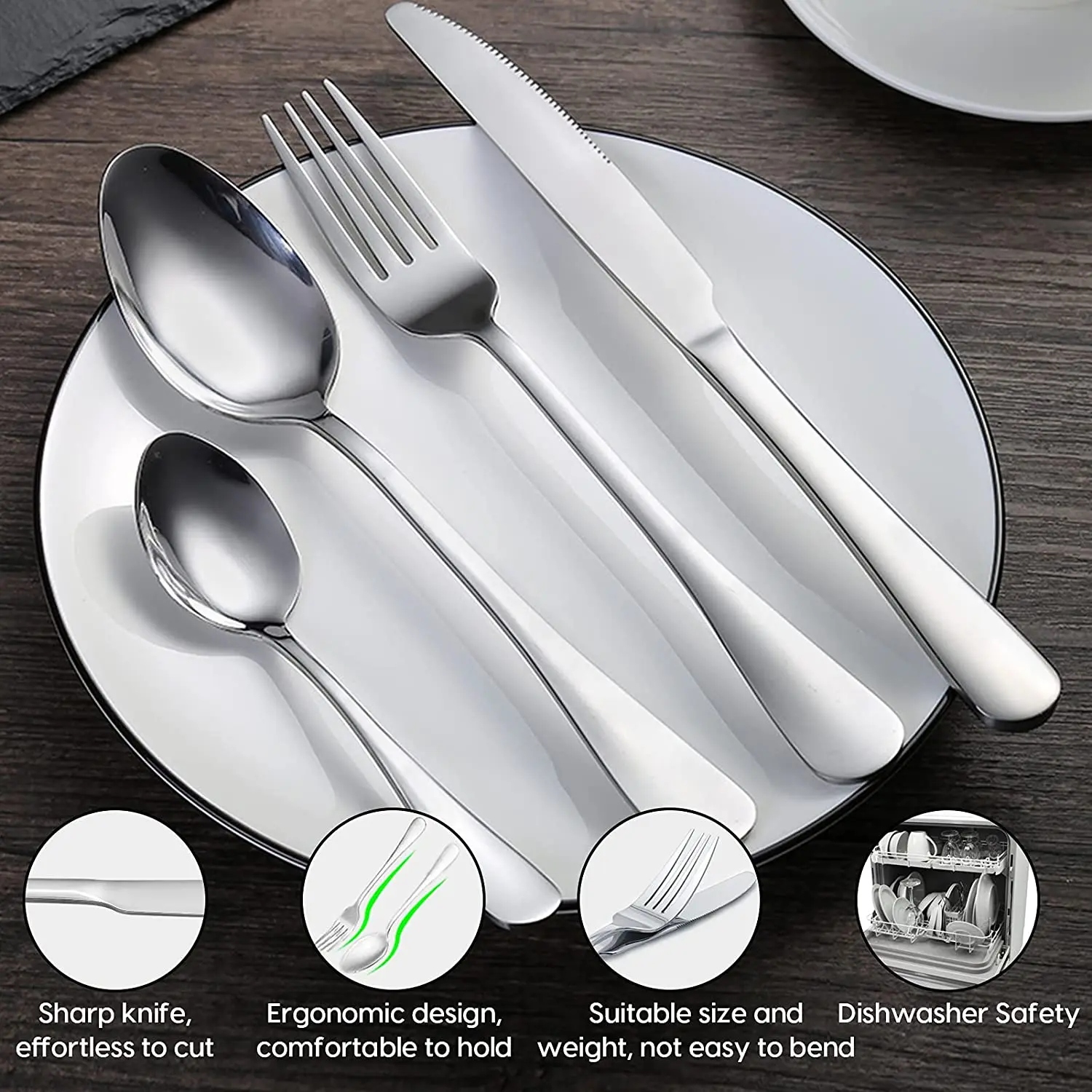 【Высококачественная нержавеющая сталь】The столовые приборы сэтис из высокого качества 18/10 нержавеющая сталь, которая очень прочна, коррозионно-стойкие для повседневного использования. Его прочность гарантирует, что он не будет легко гнутся, предоставляя вам при длительном использовании.
