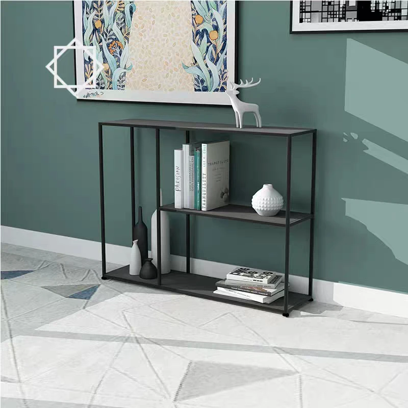 Простая и стильная железная напольная полка, книжная полка против стены