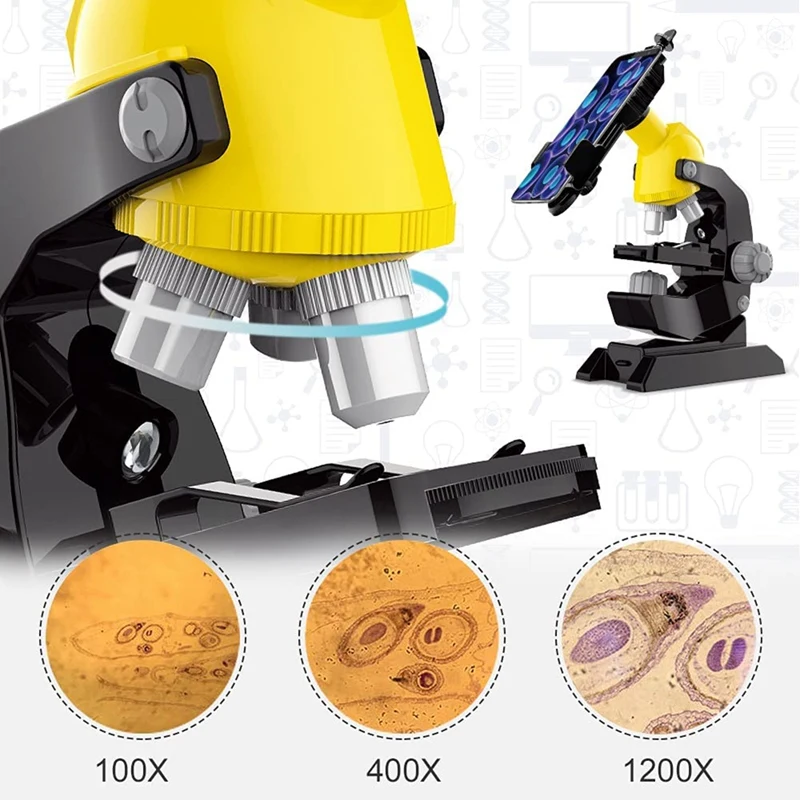 [Высокие увеличения] вращающаяся монокулярная головка микроскопа для начинающих детей предлагает 3 различных уровня увеличения при 100X 400X 1200X. Просто выберите подходящее увеличение для просмотра различных объектов. Хороший инструмент для вашего ребенка, чтобы исследовать неизвестность и вдохновить его/ее воображение и творчество.