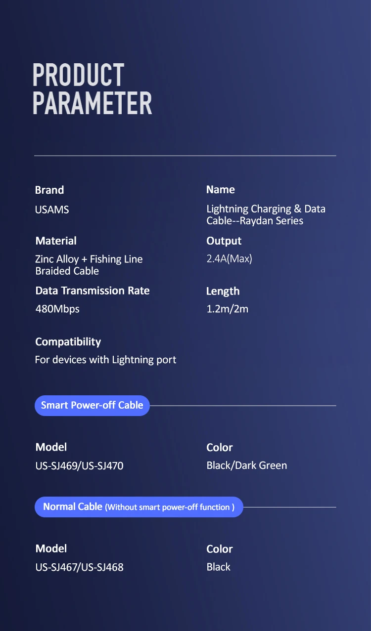 Название: кабель типа C-Lightning Smart Power-off 20 Вт PD -- серия Raydan