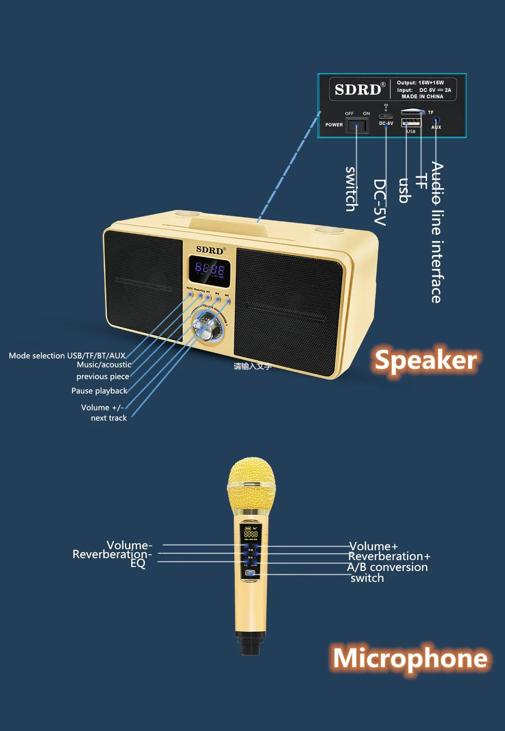 -Воспроизведение с микро SD карты, 3,5 мм вход переменного тока, USB флеш-накопитель или