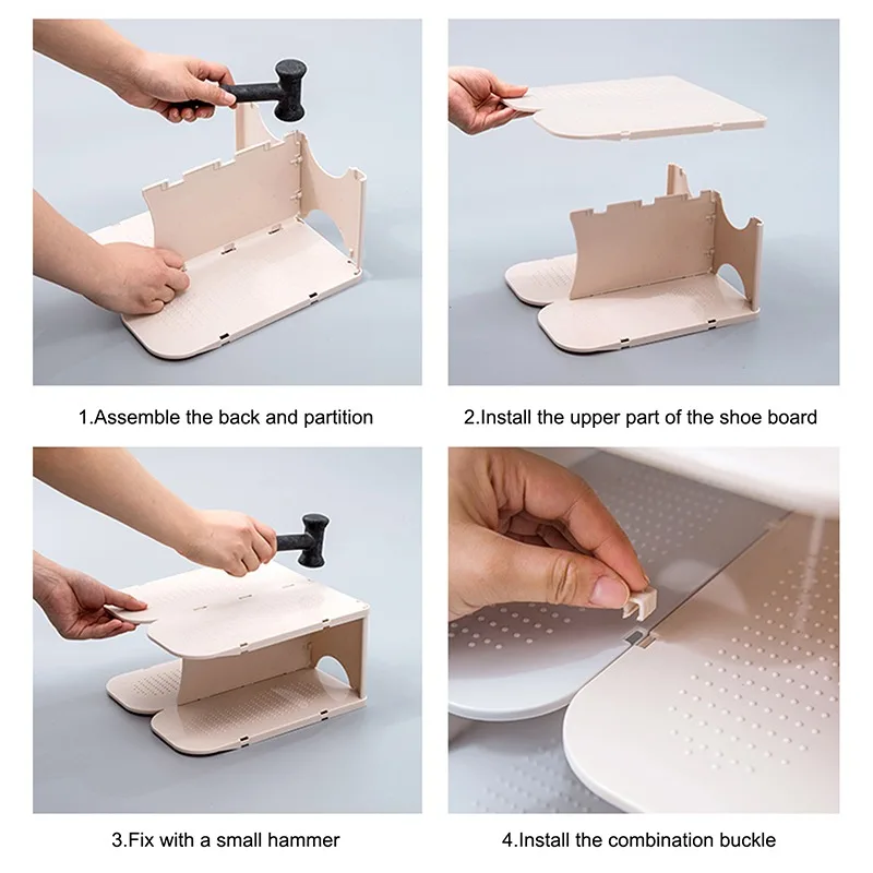 > Компактный дизайн: если не используется, вся коробка для обуви может быть разделена на мелкие части для экономии пространства.