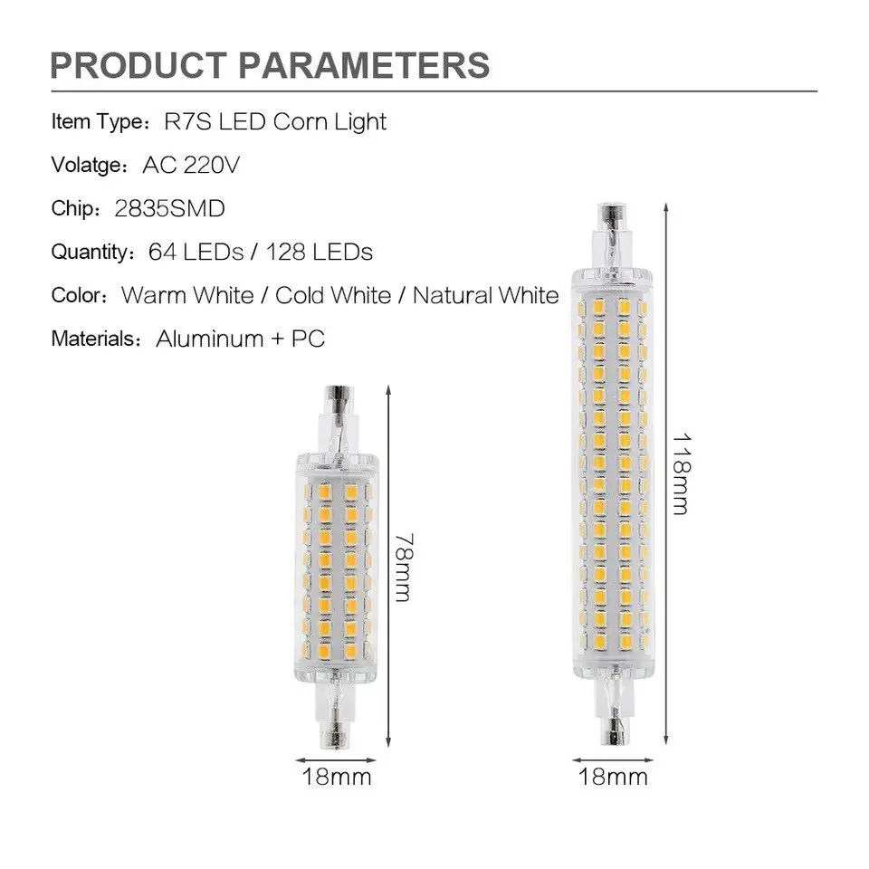 1x Диммируемый керамический led r7s 10 Вт 118 мм 220 В кукурузный светильник r7s Светодиодный точечный светильник