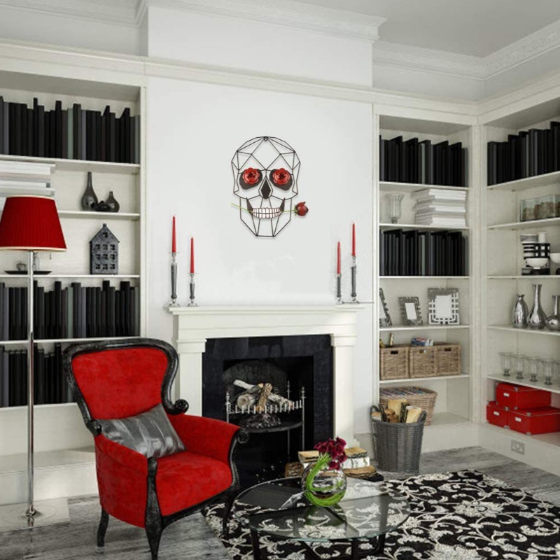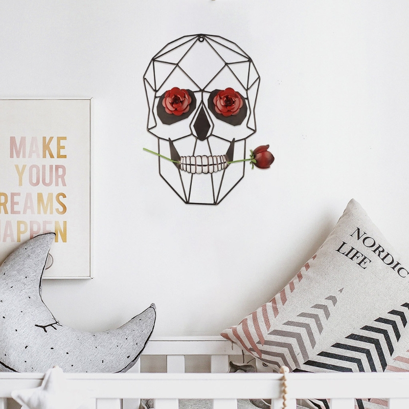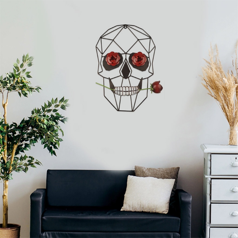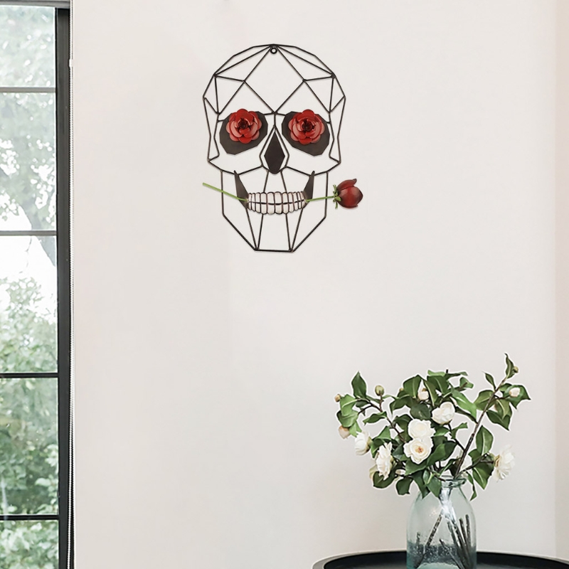 Высокое качество: металлический череп с розой изготовлен из железа, что делает изощренную отделку долговечной.