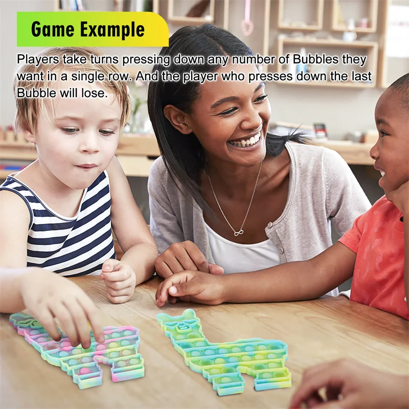 2. Интеллектуальная настольная игра: Pop bubble push-это настольная игра, которая может осуществлять математическое мышление детей, логическую логику, умственную арифметику и мелкую моторику. Нажимайте пузырьки fidget toy players по очереди, нажимая на любое количество пузырьков, которые они хотят в один ряд. Игрок, который нажимает последние пузырьки, проигрывает. Нажмите и «pop»-отличная игрушка-Непоседа и другие сенсорные игрушки.
