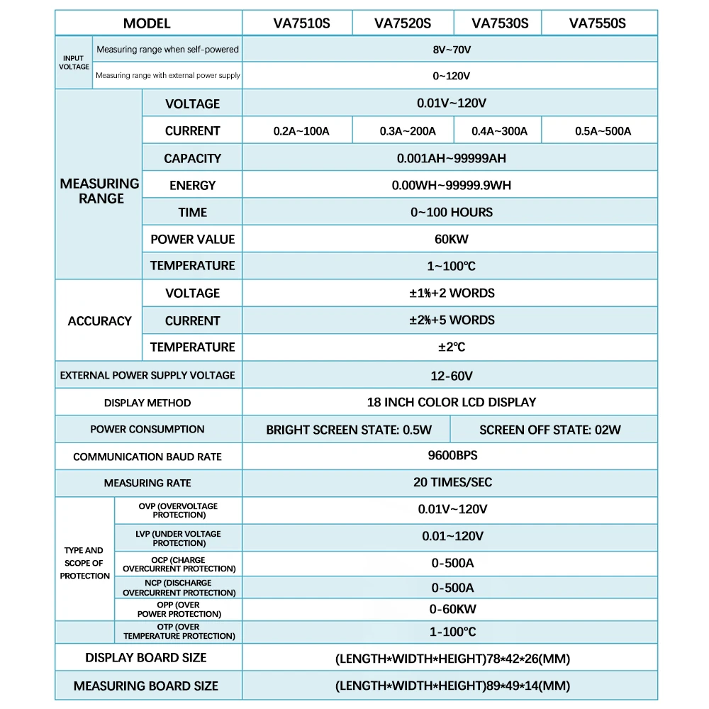 VAC7510S-это многофункциональный инструмент, который может отображать различные физические параметры, такие как напряжение, ток, мощность, мощность, энергию, температуру, время работы и т. Д. В режиме реального времени. Избыточная мощность, перенапряжение, напряжение под напряжением и перегрузки по току могут быть реализованы через резервный релейный интерфейс. Защита от перегрева. Кроме того, прибор использует 1,8-дюймовый цветной ЖК-дисплей в качестве дисплея, которая отображает более полную, четкую и легко наблюдать за данные. Этот счетчик очень подходит для приложений, которые должны контролировать выходное напряжение и ток, а также заряжать и разрядить аккумулятор.