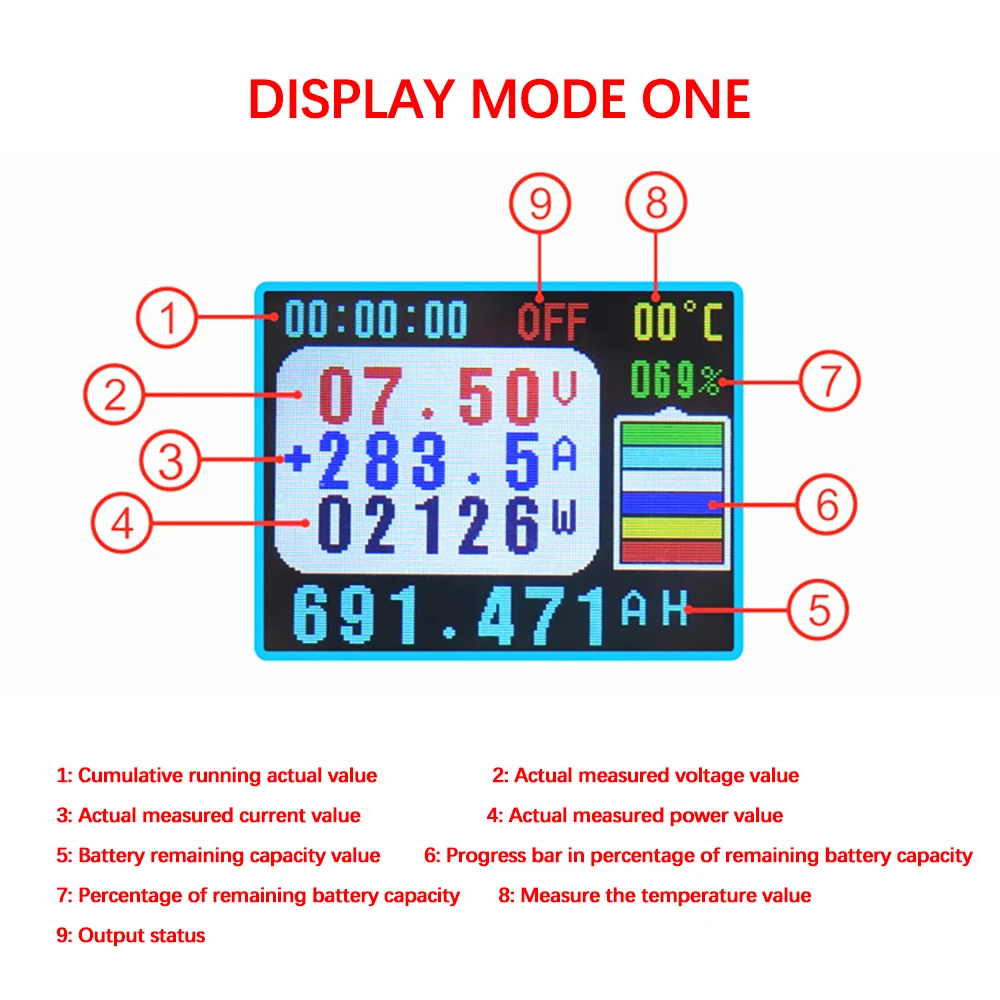 4. Напряжение, ток, ампер-час, ватт-час, время, мощность и температура отображаются одновременно, и информация о дисплее является всесторонней и четкой;