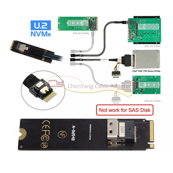 for Mainboard NGFF M-Key NVME and U.2 SSD 750 PCI-E SFF-8654 interface