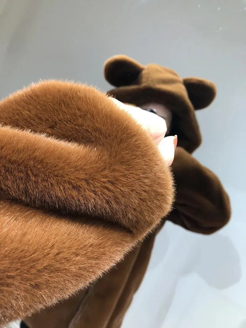 Женская парка из искусственного меха зимняя средней длины денима в стиле пэчворк