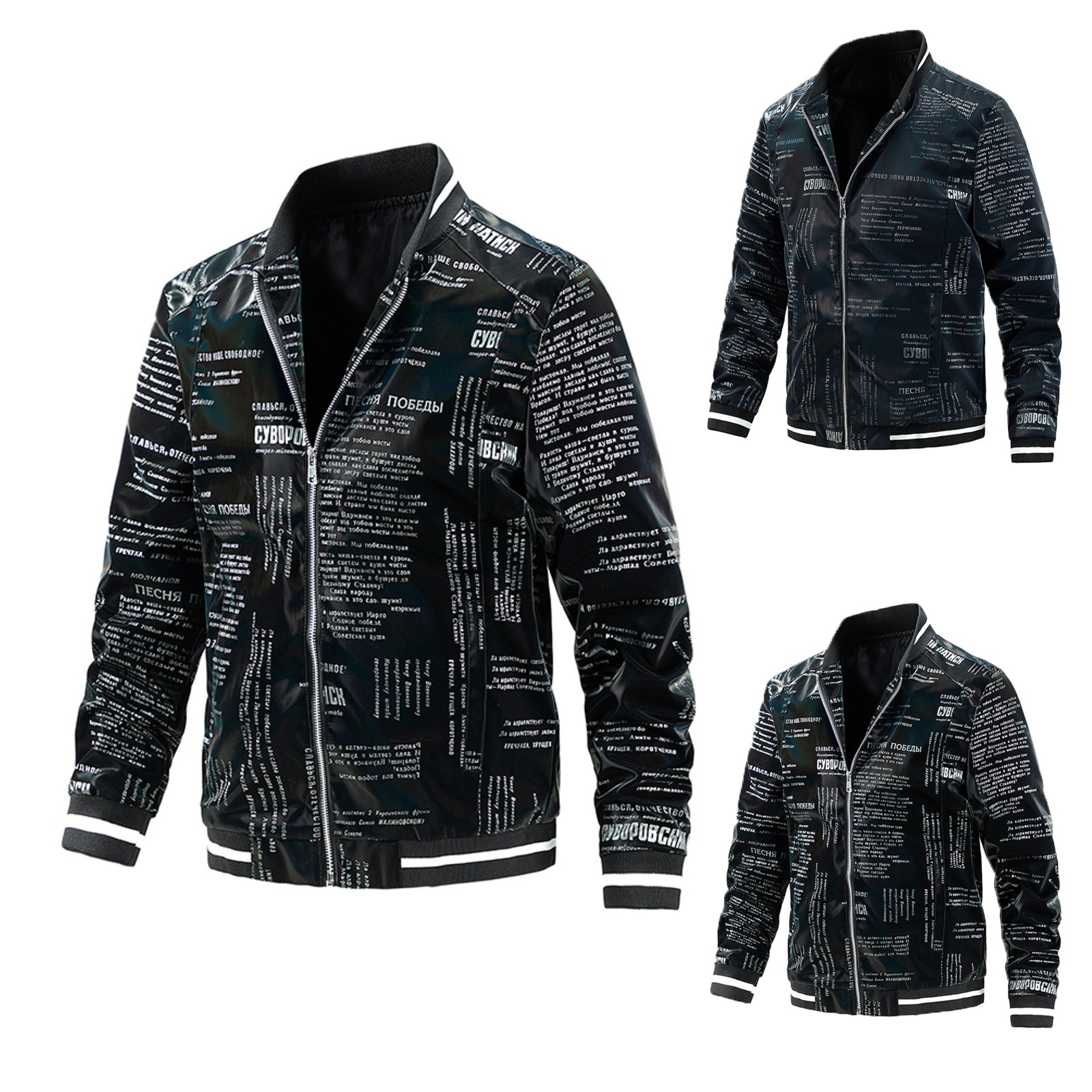 Men's Leather Autumn Letters Casual Baseball Uniform Handsome Top Jacket