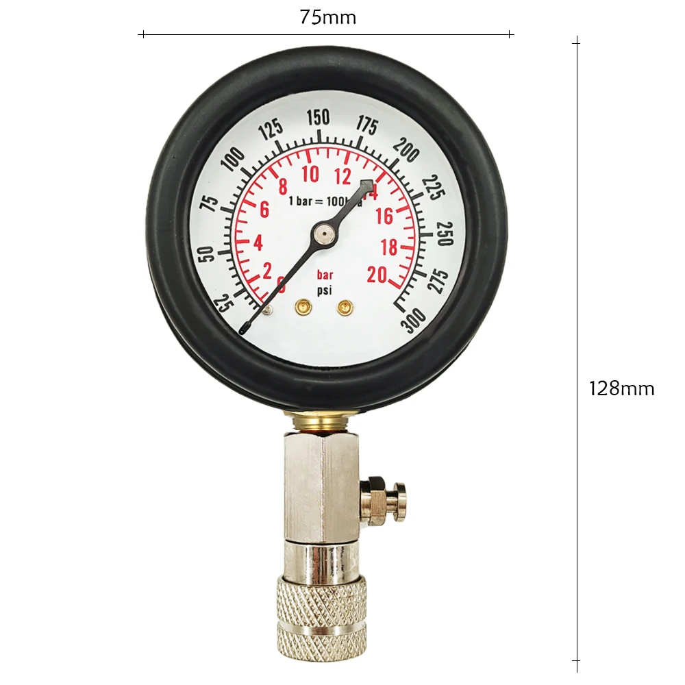 Манометр с быстрым соединением и кнопкой сброса давления, манометр с двумя испытательными давлением: 0-300psi, 0-20bar.