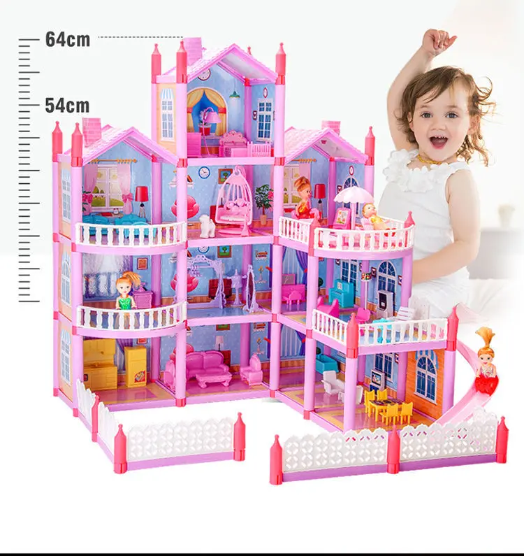 Принцесса большая вилла DIY кукольные домики 3D освещение розовый замок игровой домик с горкой двором набор Собранный кукольный домик игрушки подарок для девочки