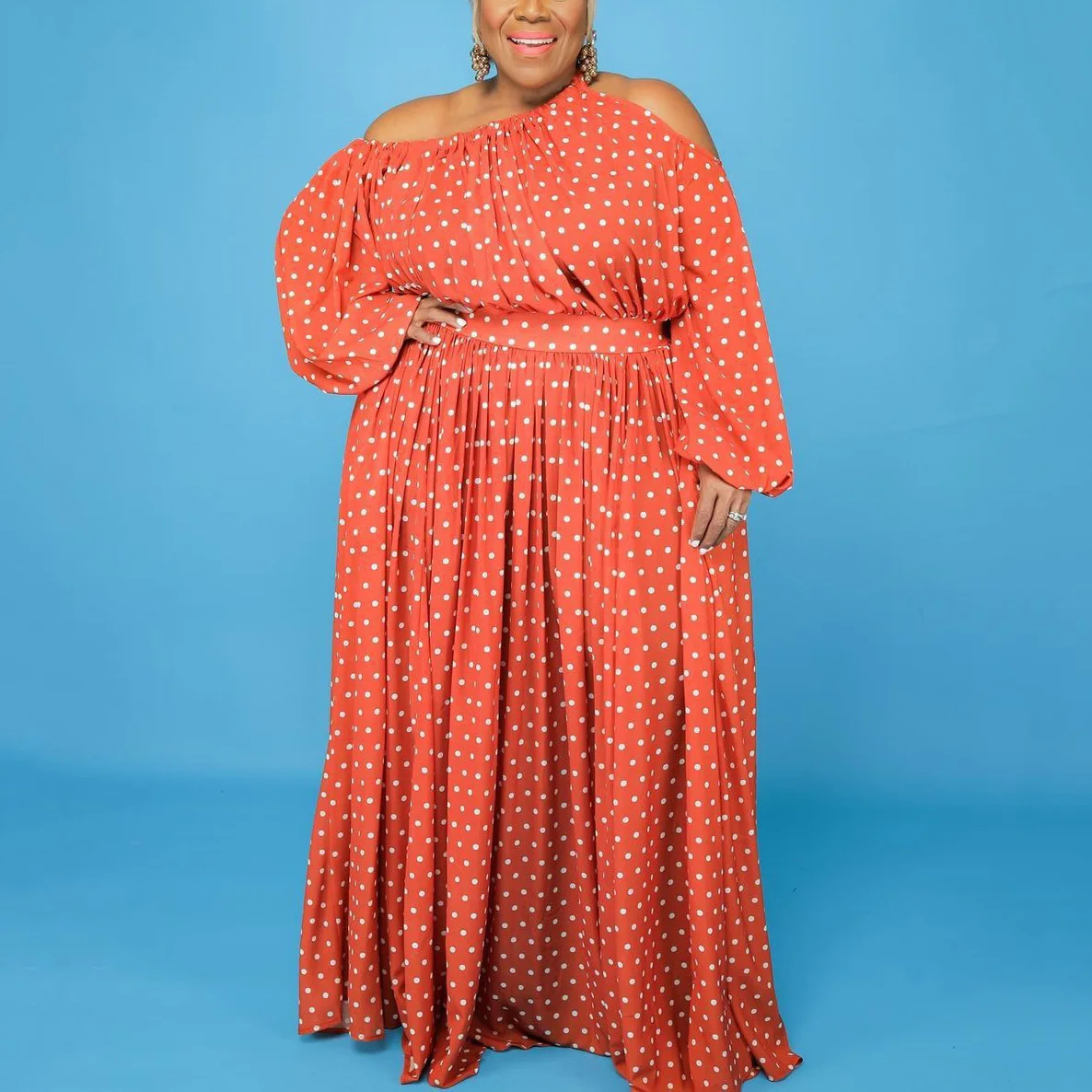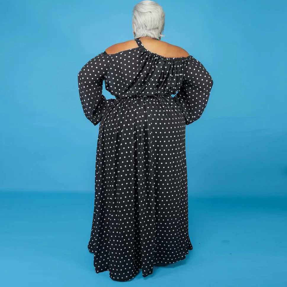 4XL 5XL Большие платья для женщин с принтом в горошек, с открытыми плечами, асимметричные, с высокой талией, длиной до пола, вечерние платья ol, оптовая продажа, товары для бизнеса, в партии, для перепродажи, одежда женские бутики, Новое поступление, осень 2022, популярный стиль