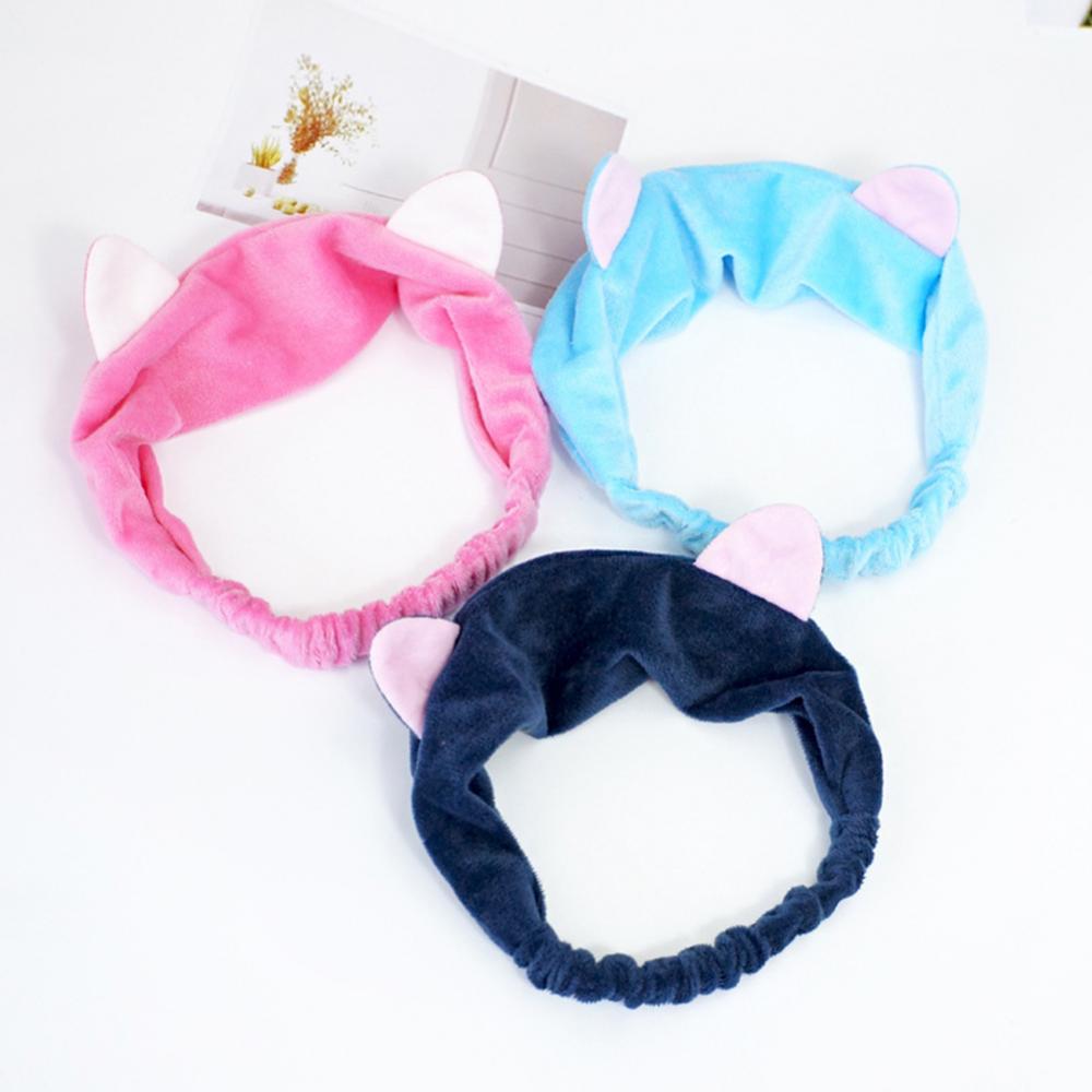 Повязка на голову с кошачьими ушками для женщин и девочек, эластичная повязка на голову, головной убор для мытья лица