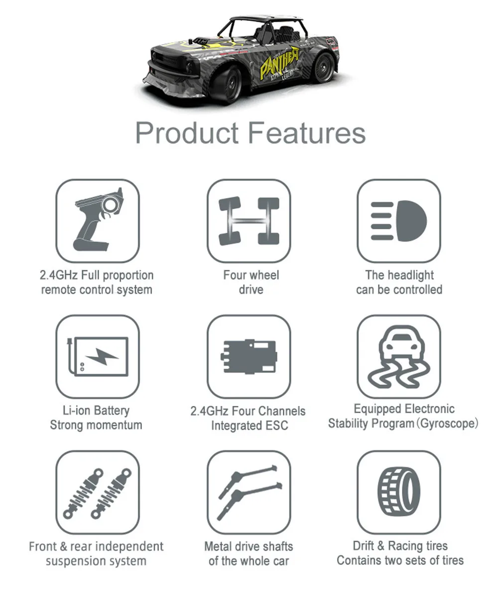 Эта модель оснащена полноразмерными функциями синхронного управления, такими как вращение вперед, назад, влево и вправо, торможение, светодиодный светильник, пропорциональная дроссельная заслонка и рулевое управление, а также защита от перезаряда батареи и защита от перегрузки по току Esc половинки в тех случаях, когда литиевая батарея мощность ниже, чем 6,5 V, и он будет автоматически прекращает работу в тех случаях, когда он меньше, чем 6V Светодиодный Ангел светильник глаза управляемый головной светильник s ESP body электронная система стабильности (гироскоп) С шариковыми подшипниками Полноразмерная синхронная система дистанционного управления 2,4G Дифференциал передачи PA, все металлические трансмиссионные вала (передняя CVD, задняя собачья кость) Ралли колеса являются стандартными, и набор запасных колес может быть заменен Посылка включает в себя: 2/3х батареи (количество батарей выбирается самостоятельно) Запасные шины 4X 1X USB кабель для зарядки 1X руководство по эксплуатации 1 маленькая поперечная втулка |