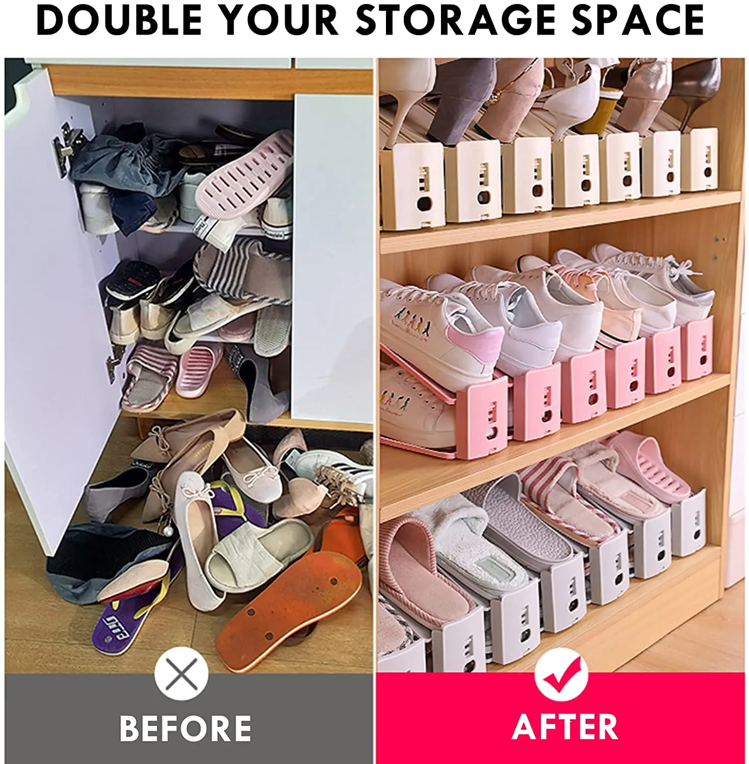 【Дизайн двухслойной обуви-конструкция двухслойной стойки для обуви позволяет экономить 50% объема вашего хранения немедленно и быстро найти нужную обувь.