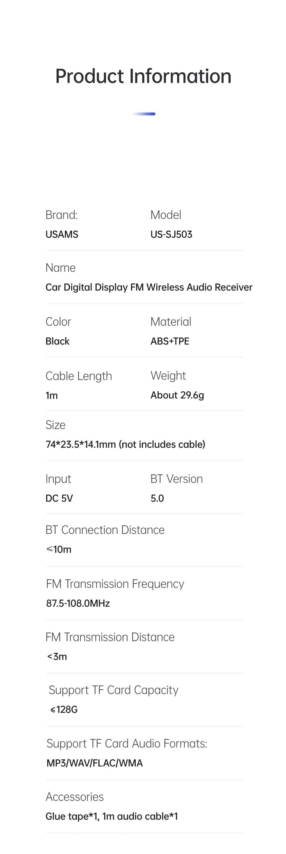 Аксессуары: клейкая лента * 1, аудиокабель 1 м * 1