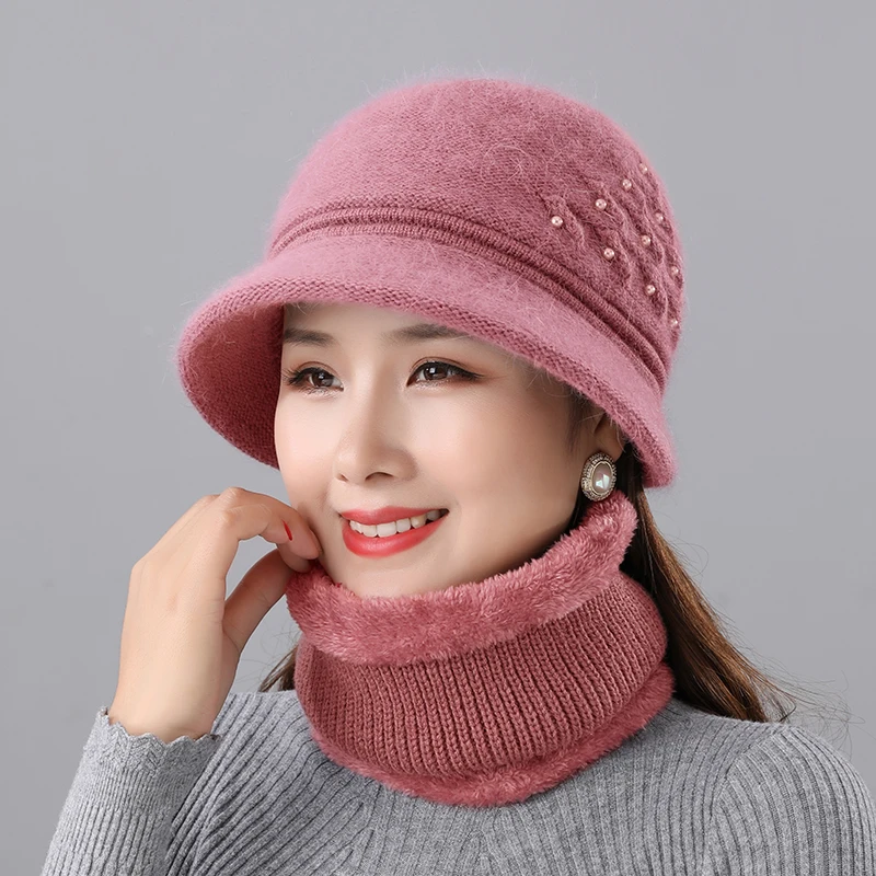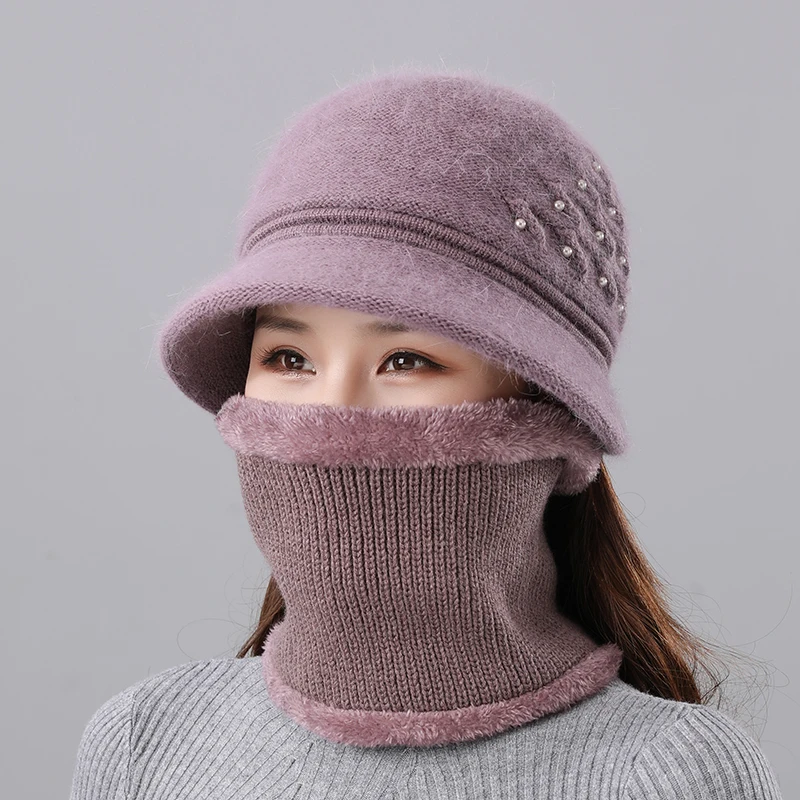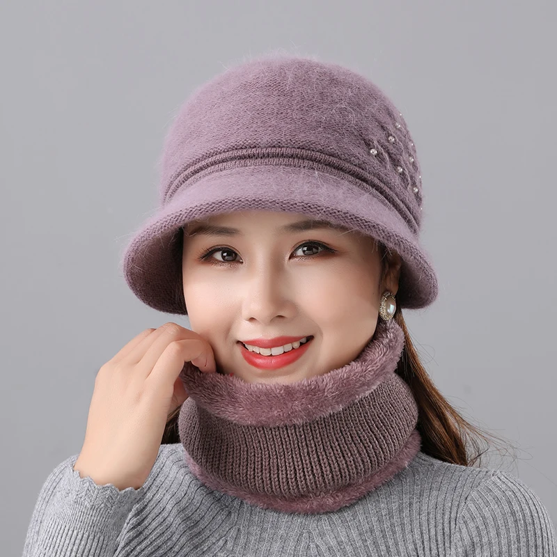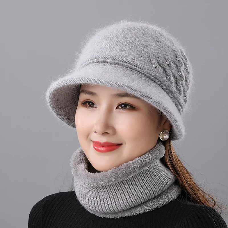 Шапка женская осенне-зимняя теплая вязаная шерстяная шапка большого размера с