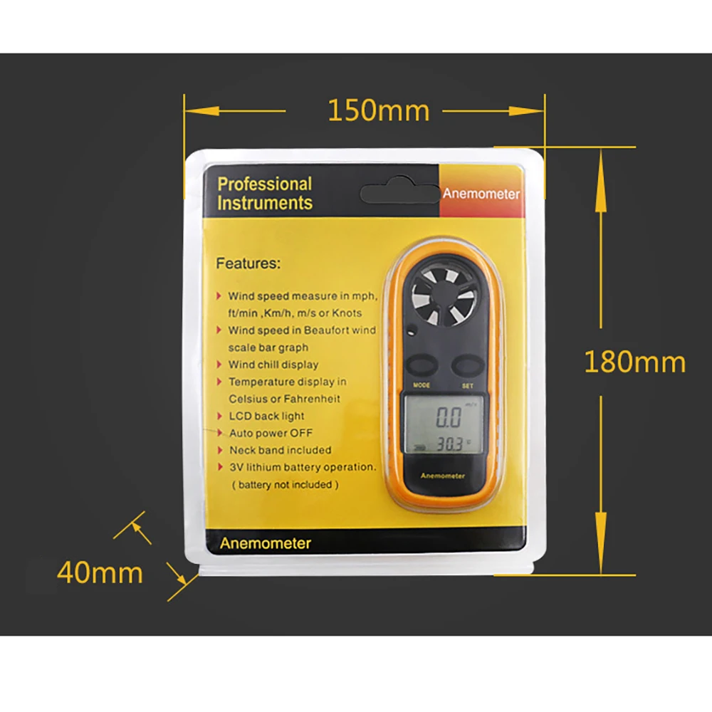 Цифровой анемометр Карманный анемометр портативная скорость ветра, температура измерительного прибора Открытый ветер 0-30 м/с