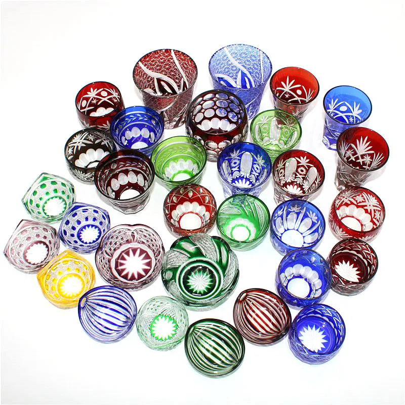 Японская короткая стеклянная чашка Edo, мини-бутылка виски, ручная работа, оптовая продажа от производителя, кухонные принадлежности, красный, синий, подарок 50-150 мл