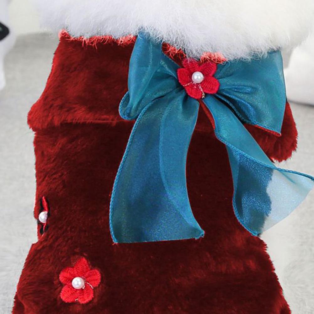 Nice-looking Pet Coat Red Flower Decor Close Fitting Puppy Two-leg Thickened Jacket Outfit Dog Outerwear Pet Vest