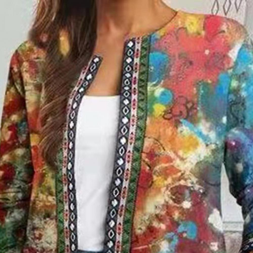 Куртка с длинными рукавами и вырезом лодочкой, с цветочным принтом, красивая и модная, имеет красивый цвет, который очень привлекательный и делает вас более очаровательным.